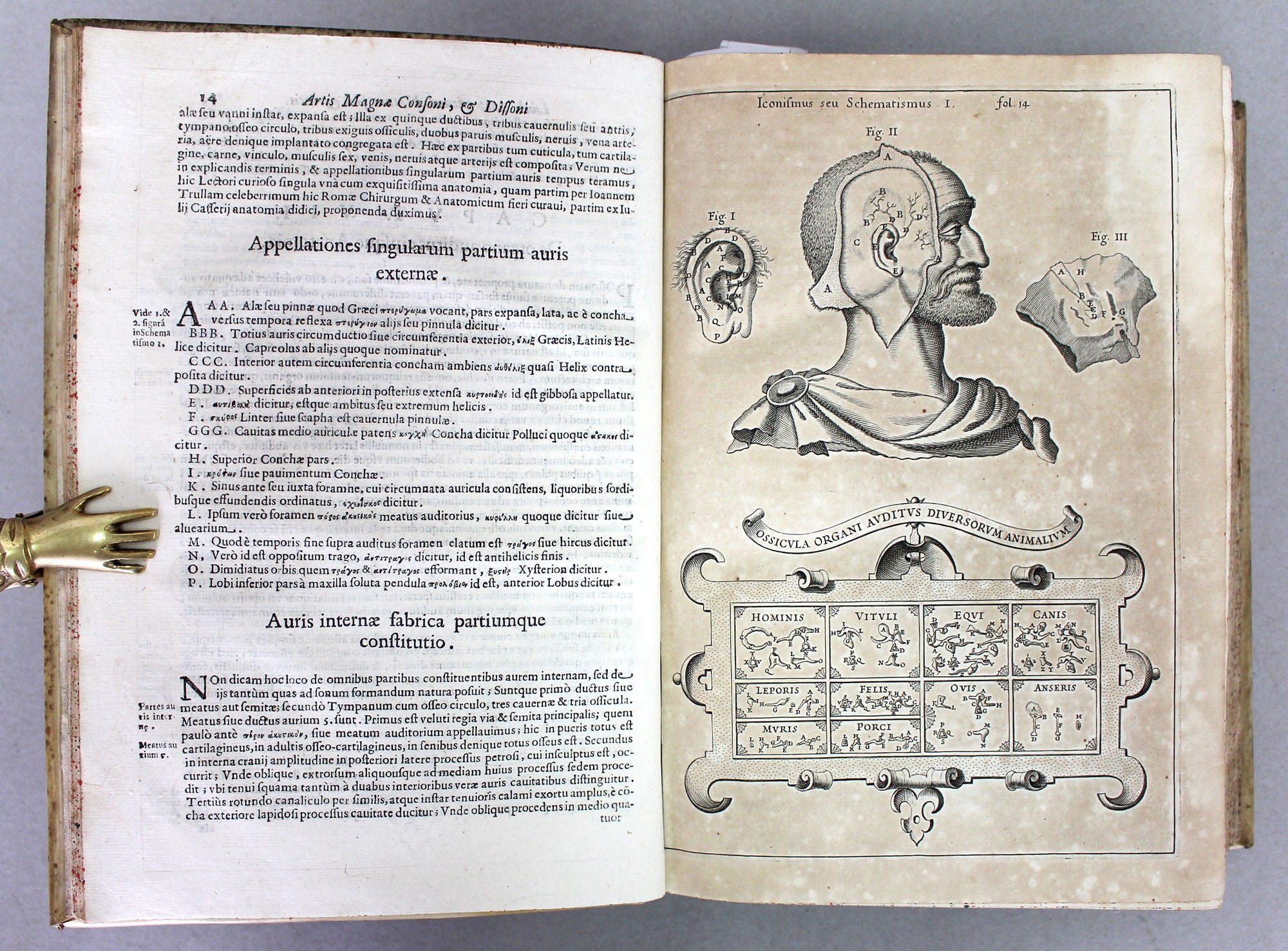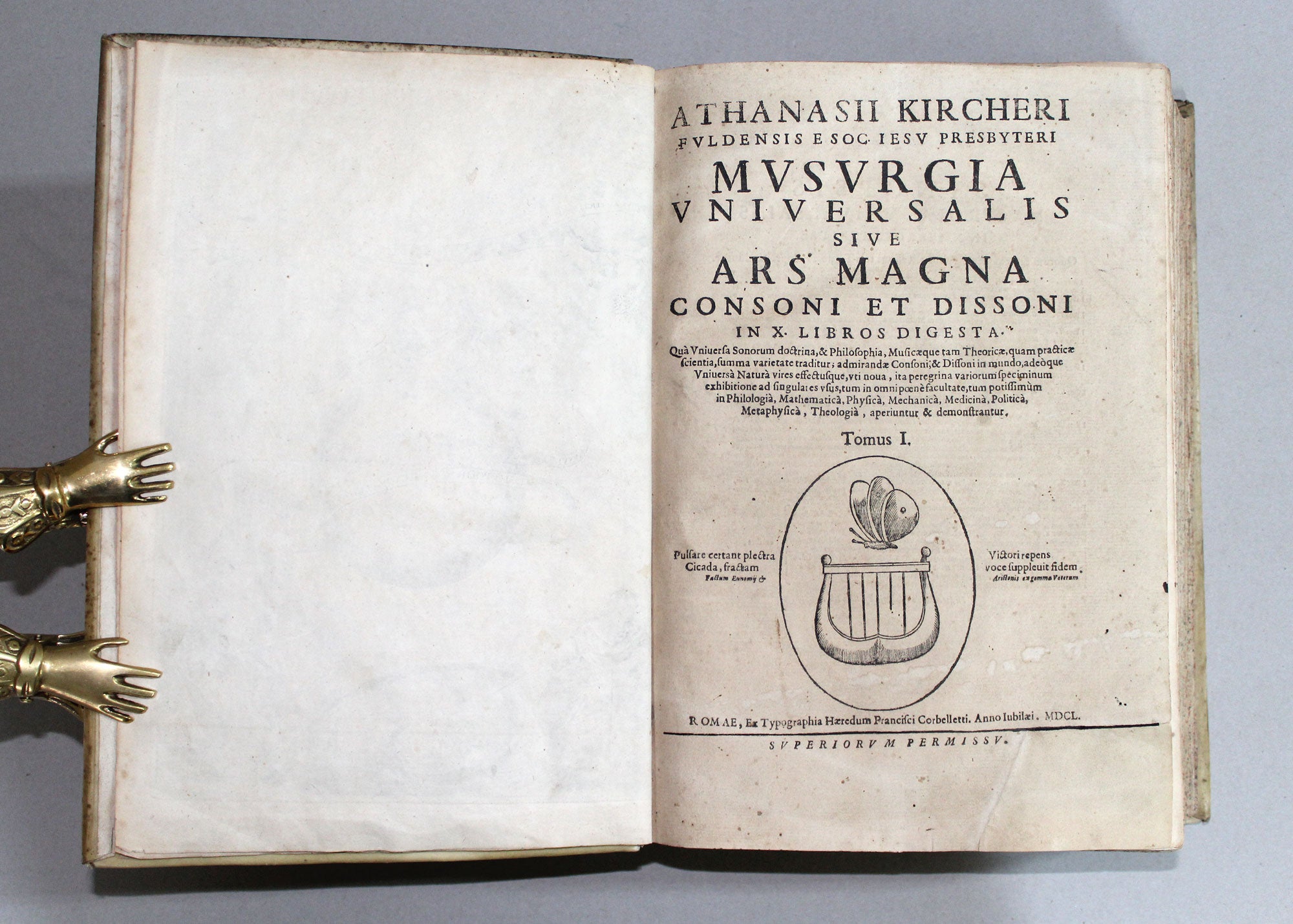 Musurgia Universalis sive ars magna consoni et dissoni in X libros digesta. Qua universa sonorum doctrina, et philosophia, musicaeque... aperiuntur et demonstrantur. Tomus I [-II qui continet... musicam mirificam... magiam consoni et dissoni... harmoniam mundi]. 2 parts in one volume. Folio.