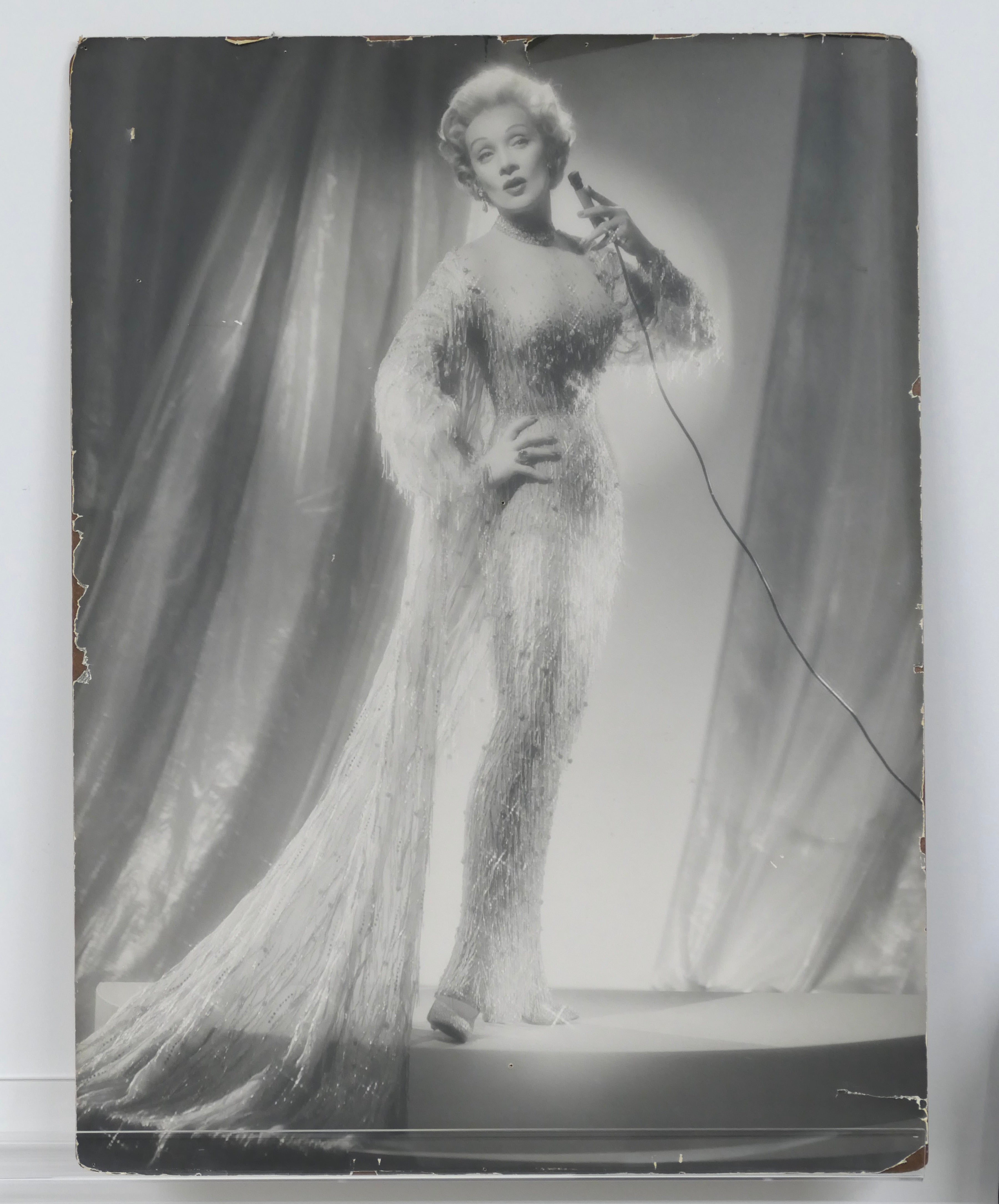 Dietrich, Marlene (1901-1992) [Engstead, John. (1912–1984)]. Oversized Portrait Photograph in a Jean Louis "nude" gown..