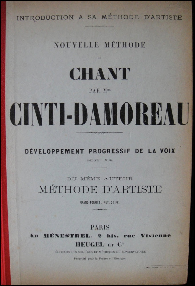 Cinti-Damoreau, Laure. (1801-1863). Développement Progressif de la Voix. Nouvelle Méthode de Chant. Paris: Heugel et Cie. [1849]. Second edition.