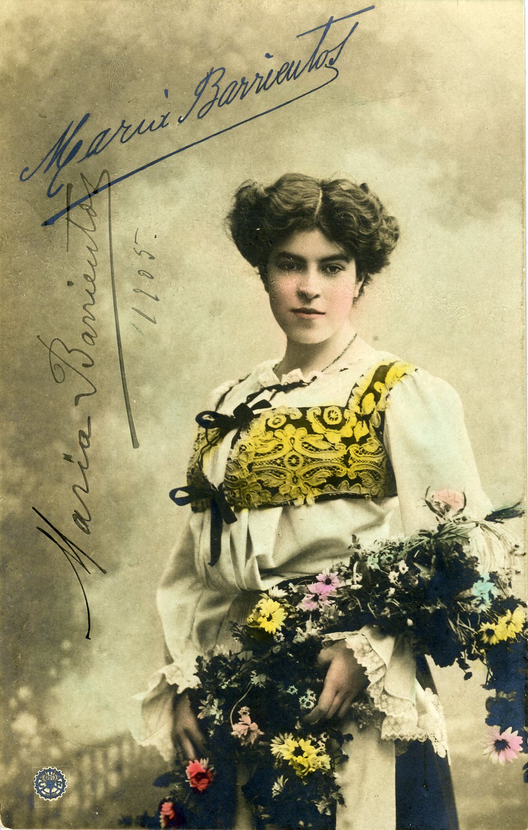 "After a short course of singing lessons at the Barcelona Conservatory, [Barrientos] made her début at the age of 14 at the Teatro Lirico... After further studies, she sang at Covent Garden (in Il barbiere di Siviglia, 1903), at La Scala (in Meyerbeer’s Dinorah and in Barbiere, 1904–5), and at many leading theatres throughout the world. On 31 January 1916 she made her Metropolitan début in Lucia di Lammermoor and she appeared there regularly in the standard coloratura roles during the next four seasons. In later years Barrientos became an admired interpreter of French and Spanish songs, and made a valuable set of records, including Falla’s Siete canciones populares españolas and Soneto a Córdoba with the composer at the piano. These complement many fascinating discs documenting her stage roles and displaying the charm of her airy soprano leggero." (Desmond Shawe-Taylor, New Grove Dictionary of Opera.)
