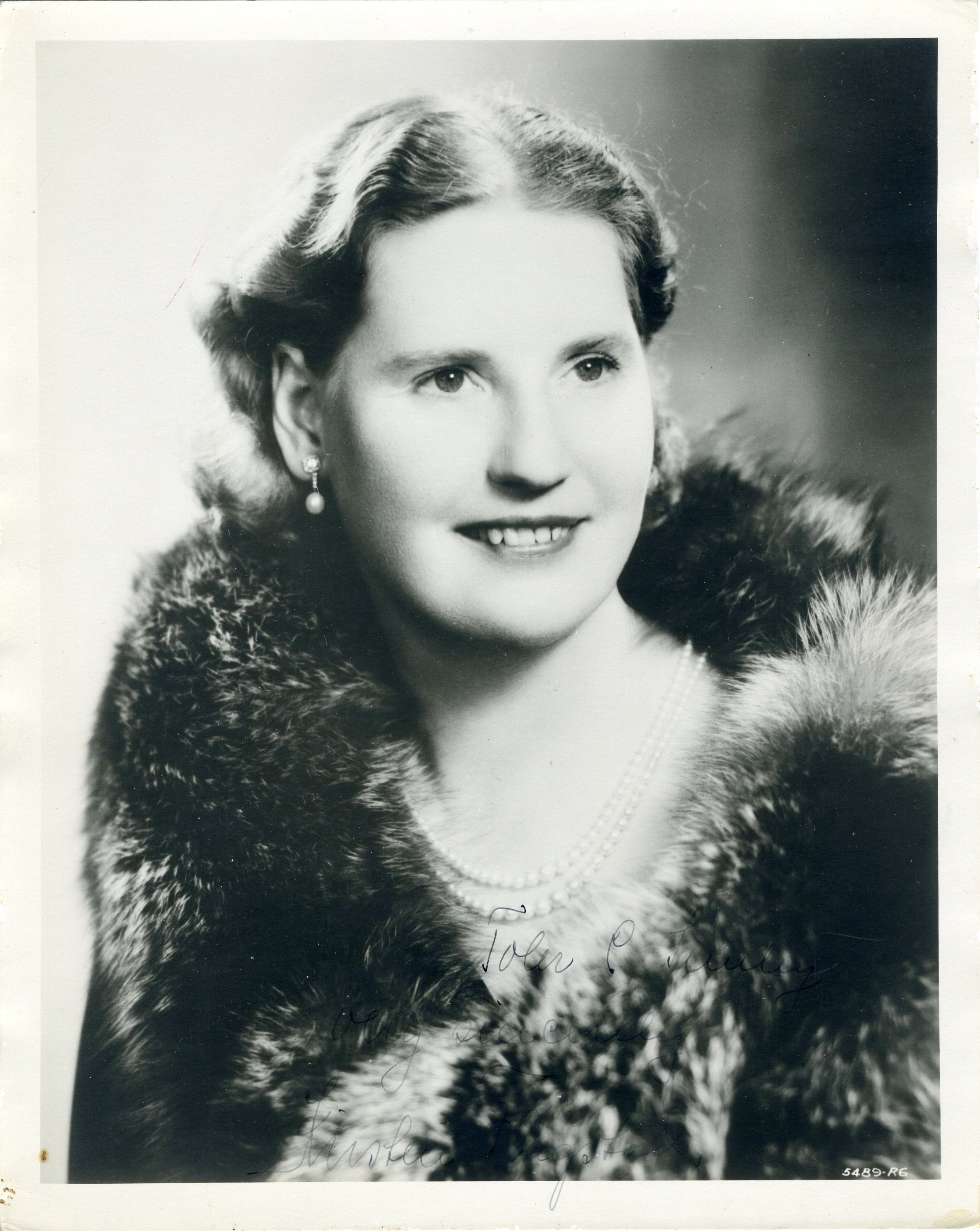 Signed 8 x 10 inch portrait photograph of the supreme Norwegian soprano. Flagstad is shown smiling in a magnificent fur coat and has signed and inscribed at the foot to a Mr. Toler C. Lemley. Rather poor contrast on the signature, but otherwise a lovely image in fine condition. 20.3 x 25.4 cm.