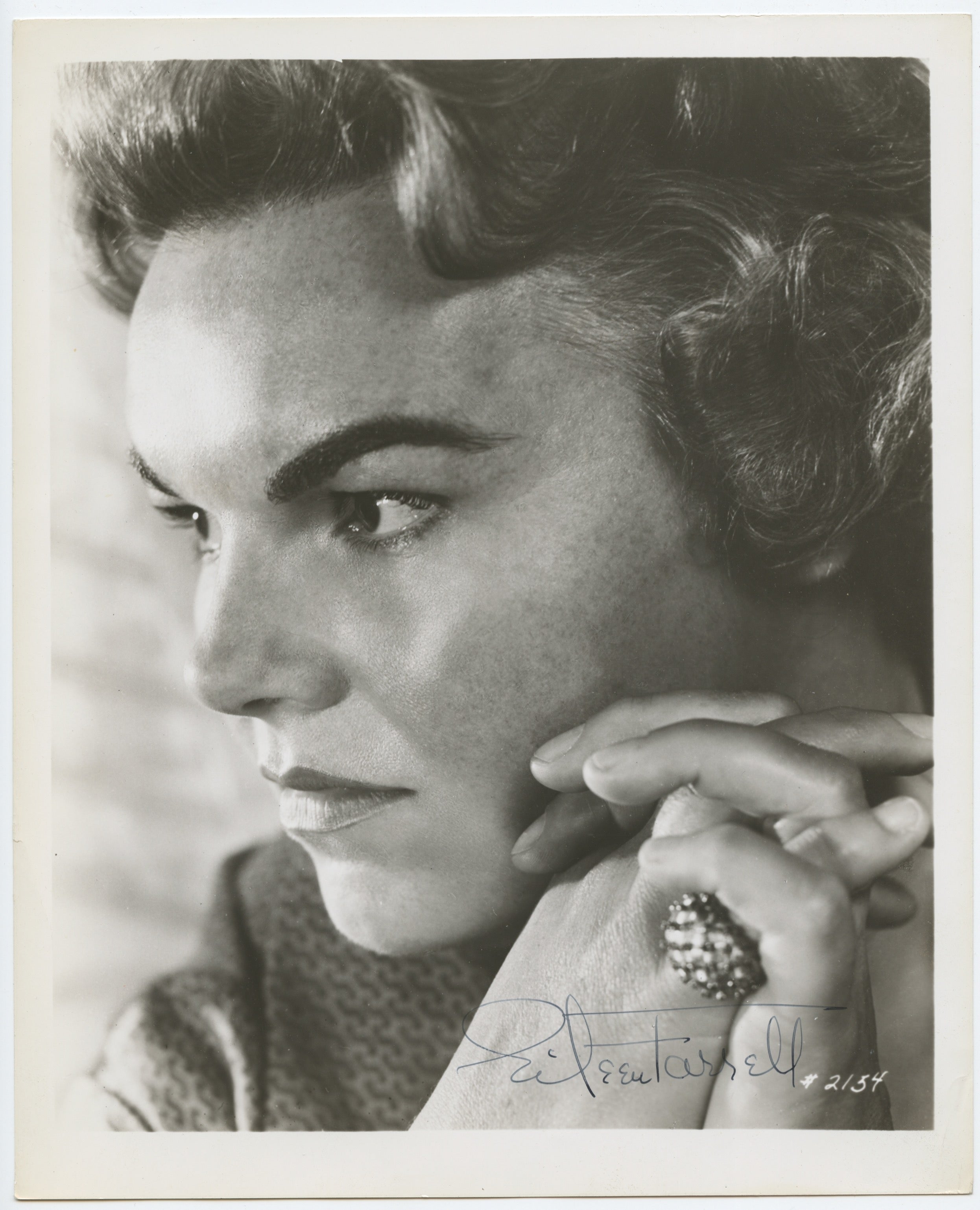 Farrell, Eileen. (1920–2002). Signed Photograph. Signed photograph of the American soprano known for having "one of the largest and most radiant operatic voices of the 20th century" (NPR). She is shown in an intense portrait with her folded hands in the foreground, and has signed at the lower right. Very fine. 8 x 10 inches (20.7 x 25.5 cm).