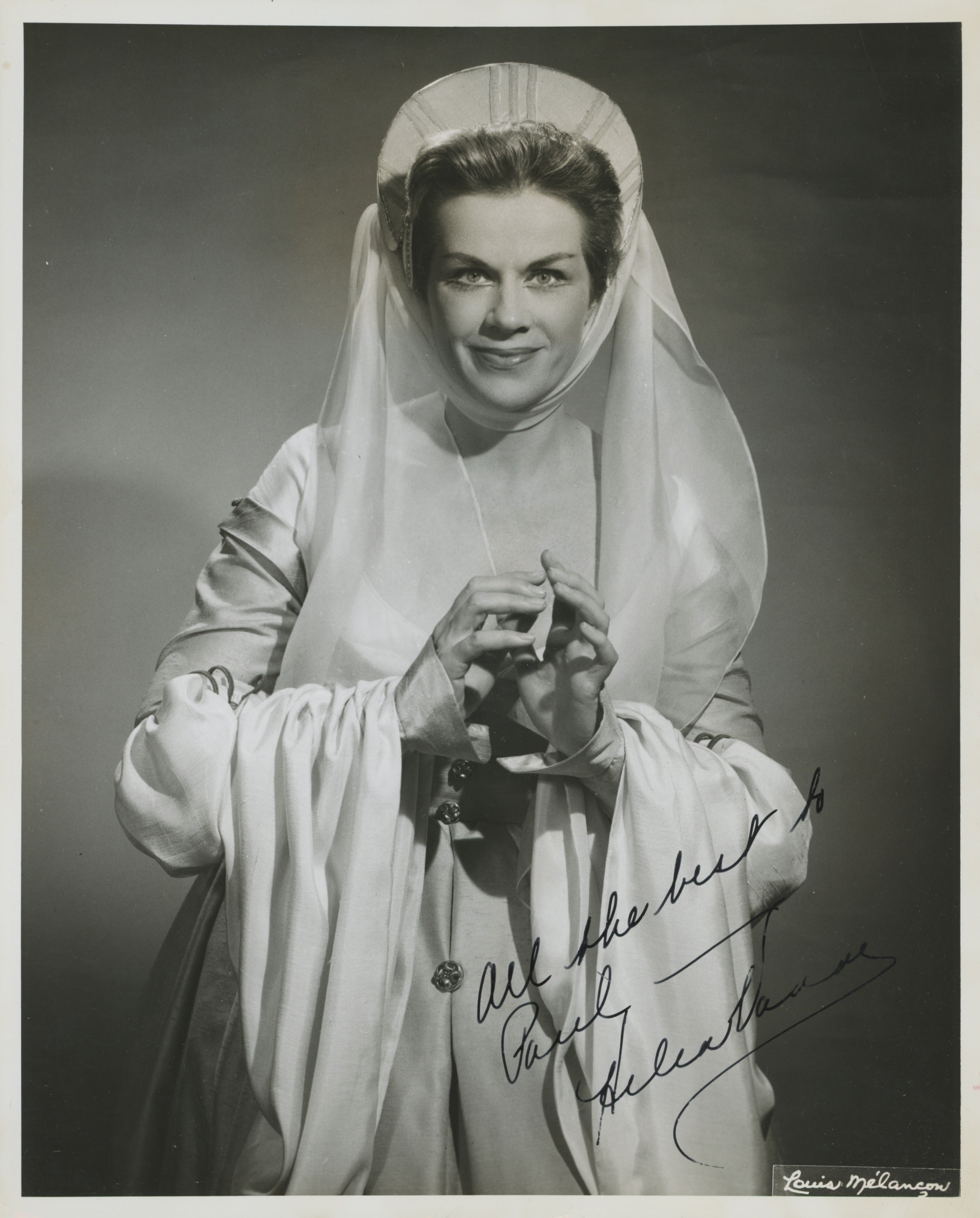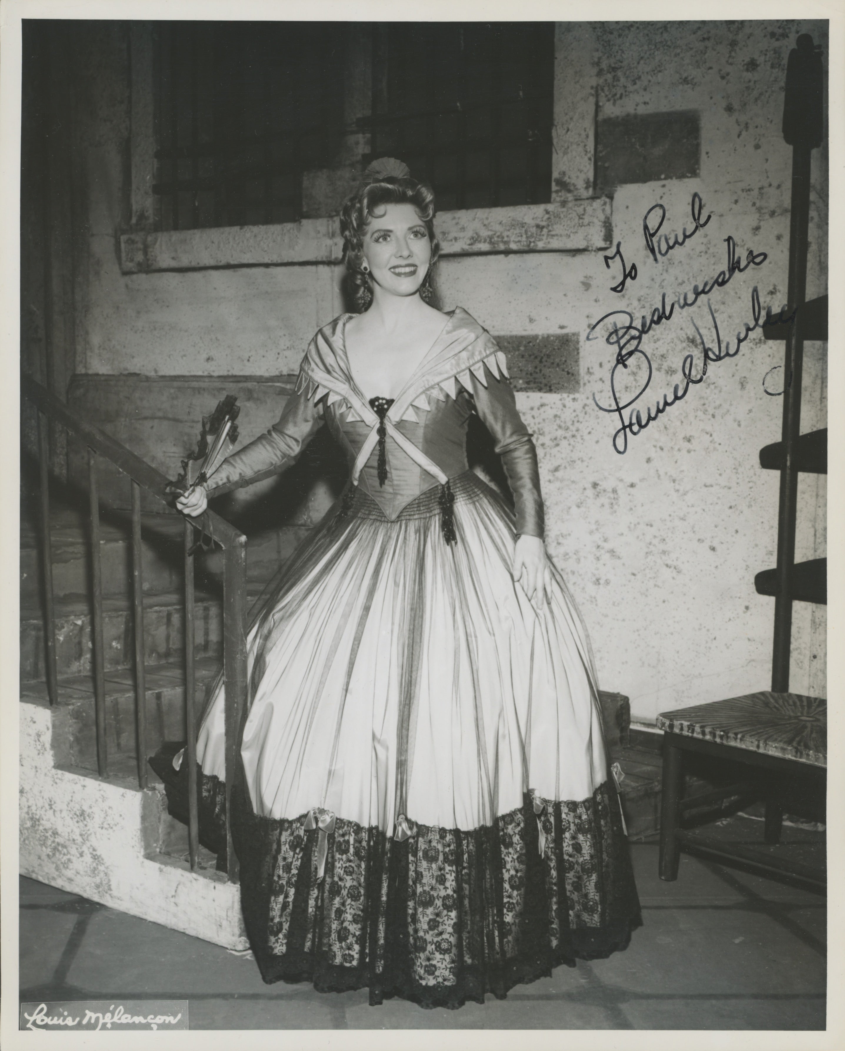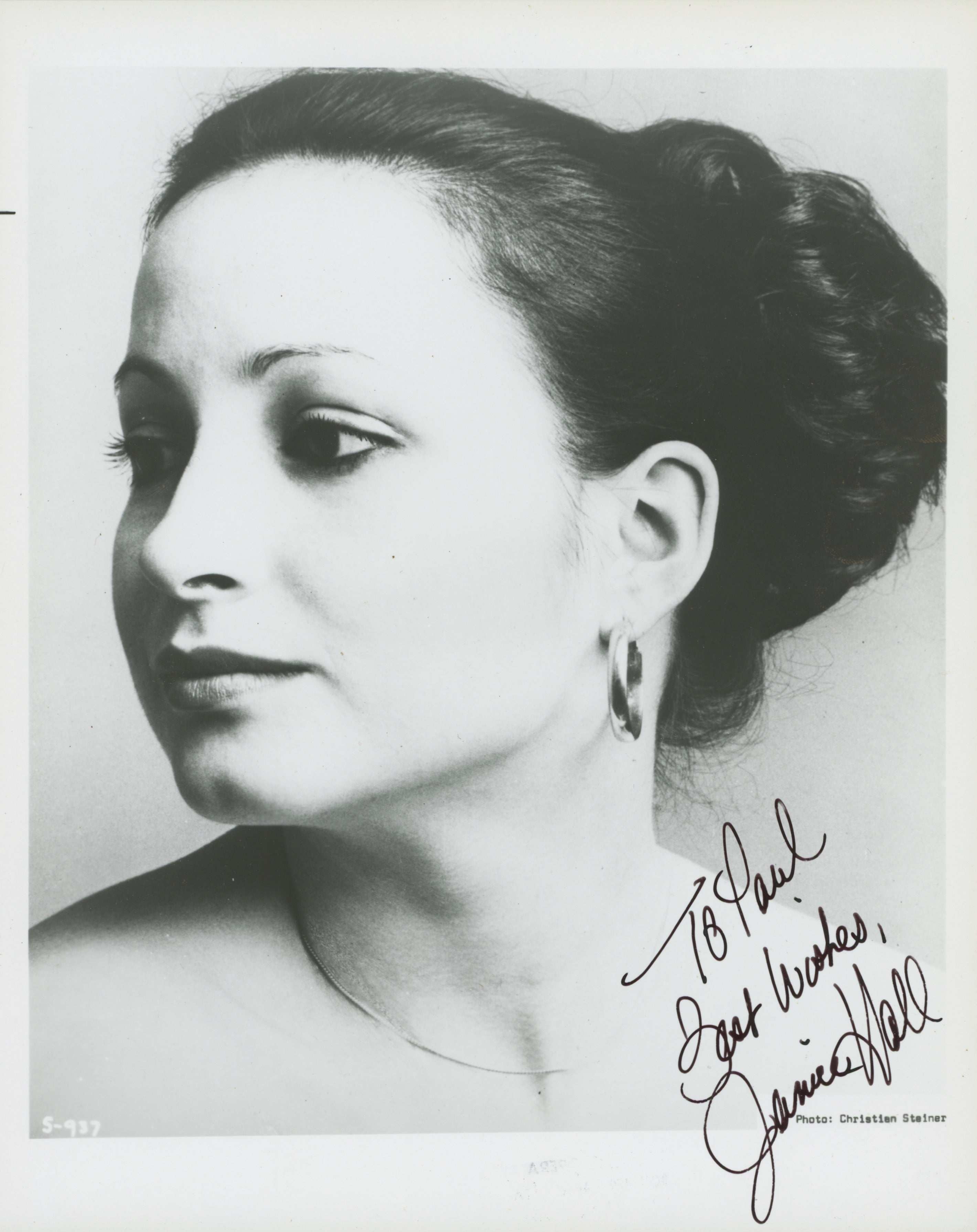 Collection of eleven signed photographs of female opera stars of the mid-to-late 20th century, including Eileen Farrell, Janice Hall, Cynthia Haymon, Marilyn Horne, Laurel Hurley, Helen Vanni, Frederica von Stade, Sandra Warfield, and Yoko Watanabe.  Overall in fine to very fine condition.  Majority of prints 8 x 10 inches (20.3 x 25.4 cm.).