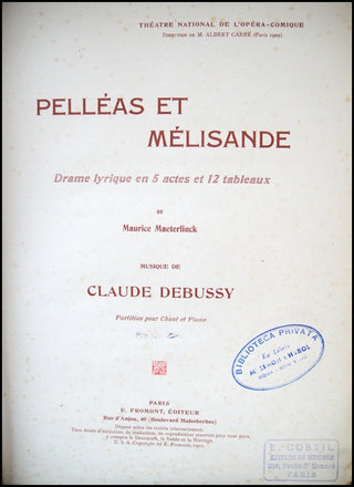 Debussy, Claude. (1862-1918) Pelléas et Mélisande. Drame lyrique en 5 actes et 12 tableaux de Maurice Maeterlinck [...]. Partition pour piano et chant.