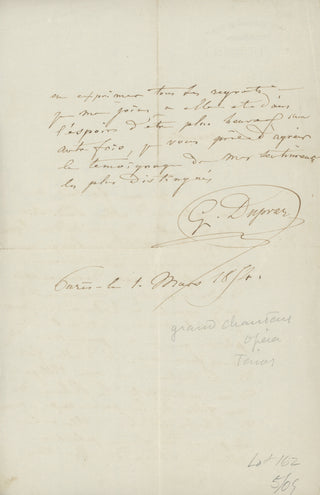 Duprez, Gilbert. (1806–1896) Autograph Letter Signed
