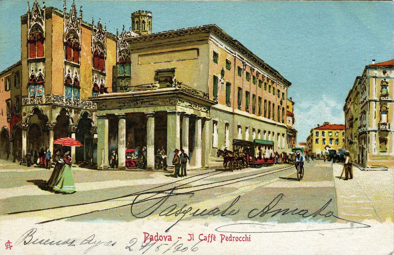 Amato, Pasquale. (1878-1942). Signed Postcard of Padua. Autograph signature from the Italian baritone who made his career in the United States and left a large body of fine recordings. On a postcard of Padua, Amato has signed boldly and dated: Buenos Aires, May 29, 1906. On the verso, the postcard is addressed to the Argentinian collector Ramona Imaz Otaño, with the original stamp and postmark. In very fine condition. 5.5 x 3.5 inches (13.9 x 9 cm).
