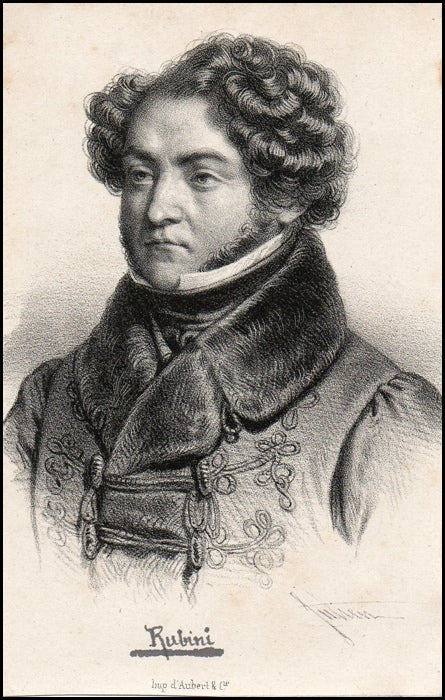 Rubini, Giovanni Battista. (1794–1854). Autograph Letter. 1 page (19 x 25 cm), no date. On paper blindstamped "Bath" at upper left. In fine condition, with usual creases, unevenly trimmed along left margin. Sold together with a period portrait engraving by Julien, 9 x 14 cm.