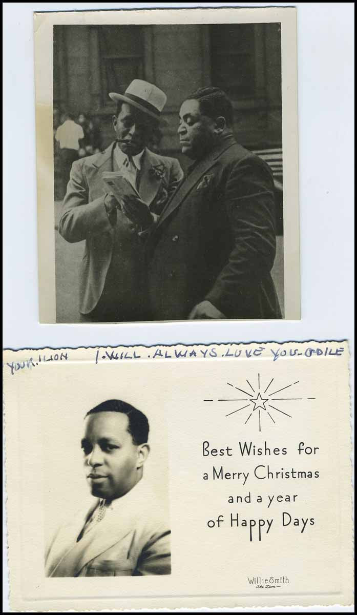 [Holiday] [Jazz & Song] [Waller, Thomas "Fats." (1904-1943)] Smith, Willie "The Lion". (1893 - 1973) Original Photograph with Fats Waller and Signed Photograph Sending Christmas Wishes
