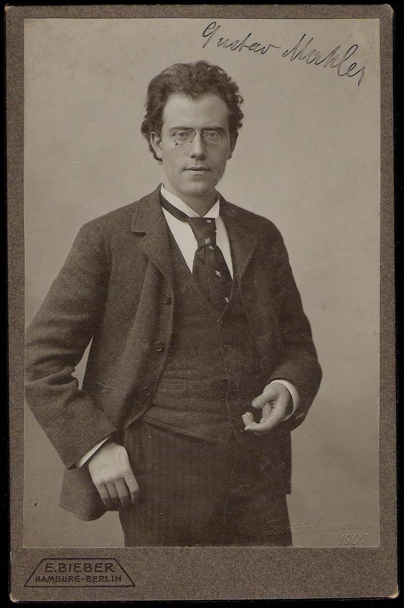 Mahler, Gustav. (1860-1911). Signed Cabinet Photograph. A full and bold autograph signature "Gustav Mahler" on an original cabinet card photograph by E. Bieber of Hamburg and Berlin. 4.25 x 6.5 inches and in very fine condition.
