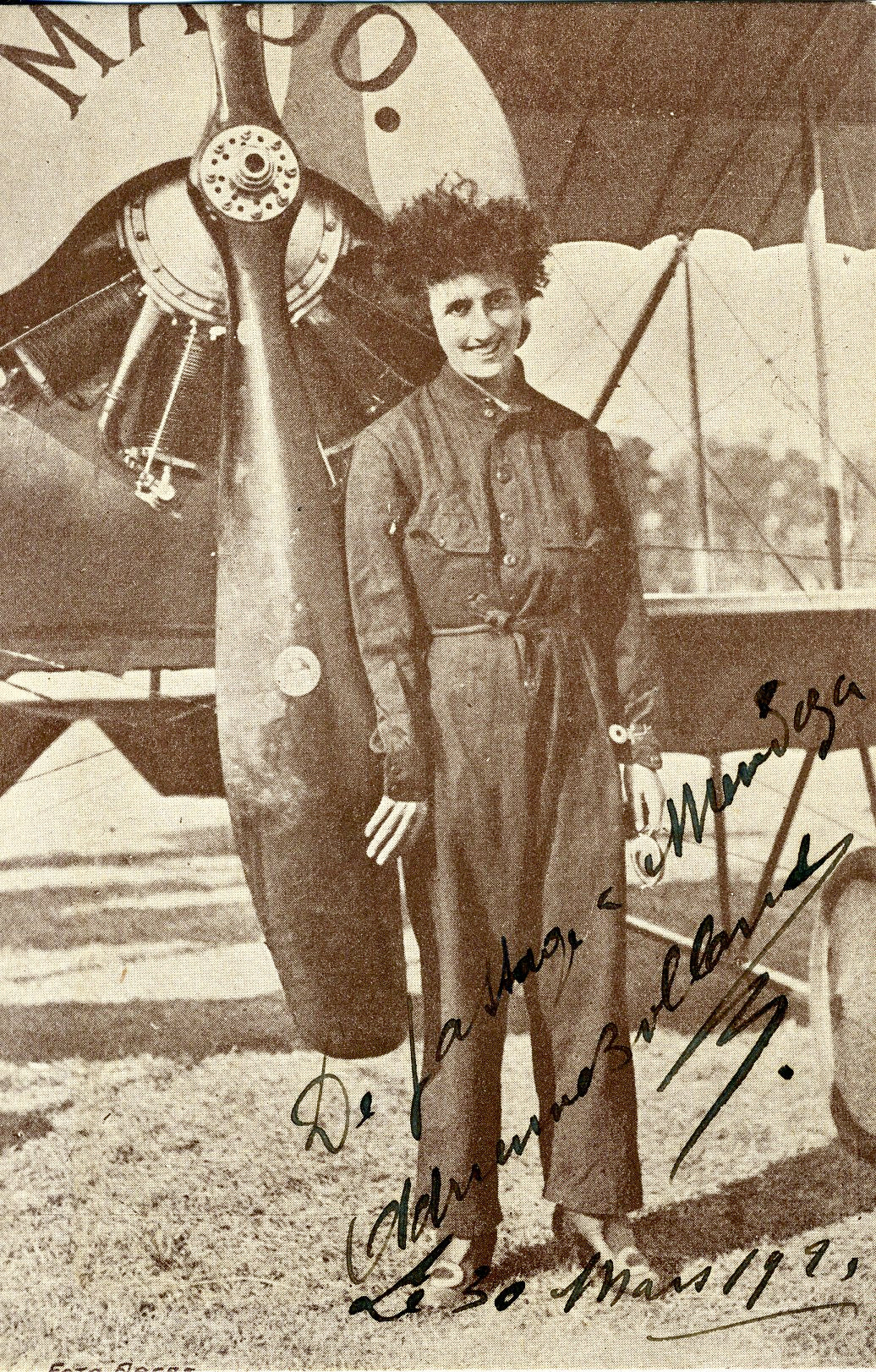 Born into a large family outside Paris, Bolland became a pilot in her twenties to pay off gambling debts. An early crossing of the English Channel led René Caudron, her employer, to send her to South America to demonstrate his planes, where she made her dangerous 40-hour Andes crossing in an outdated G3 -- assisted, she later said, by a tip relayed to her from a medium. Later in her life she became involved in leftist political causes, and eventually became part of the French Resistance.