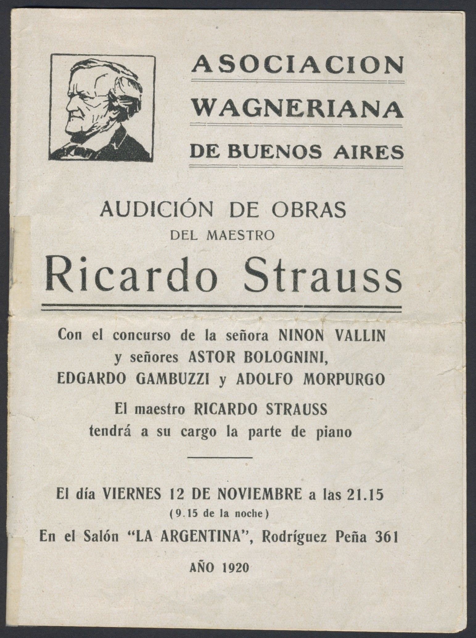 Strauss traveled to Buenos Aires in the winter of 1920–1, where he conducted the Vienna Philharmonic at the Teatro Colon.