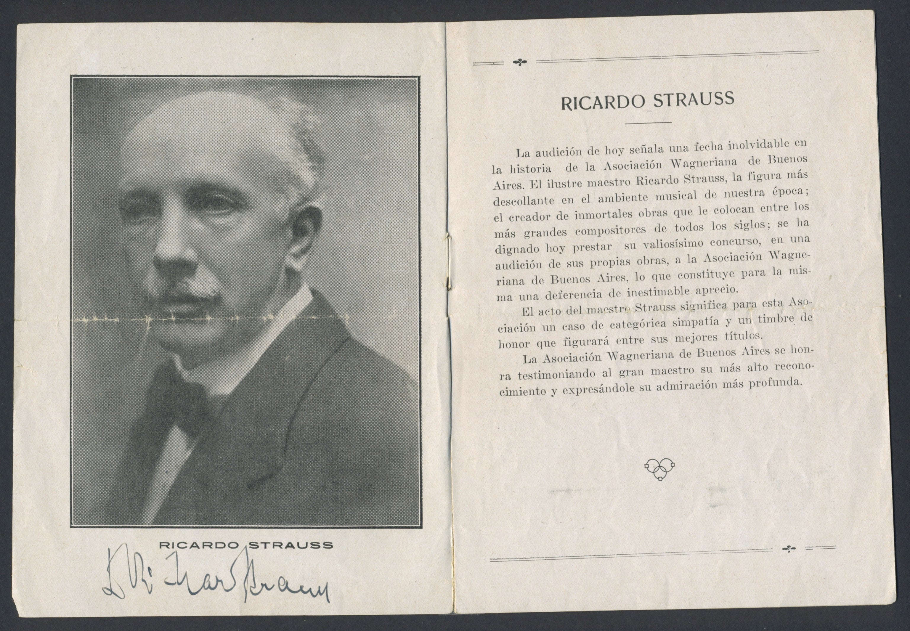 Strauss, Richard. (1864–1949). Signed Photograph in Buenos Aires Concert Program.