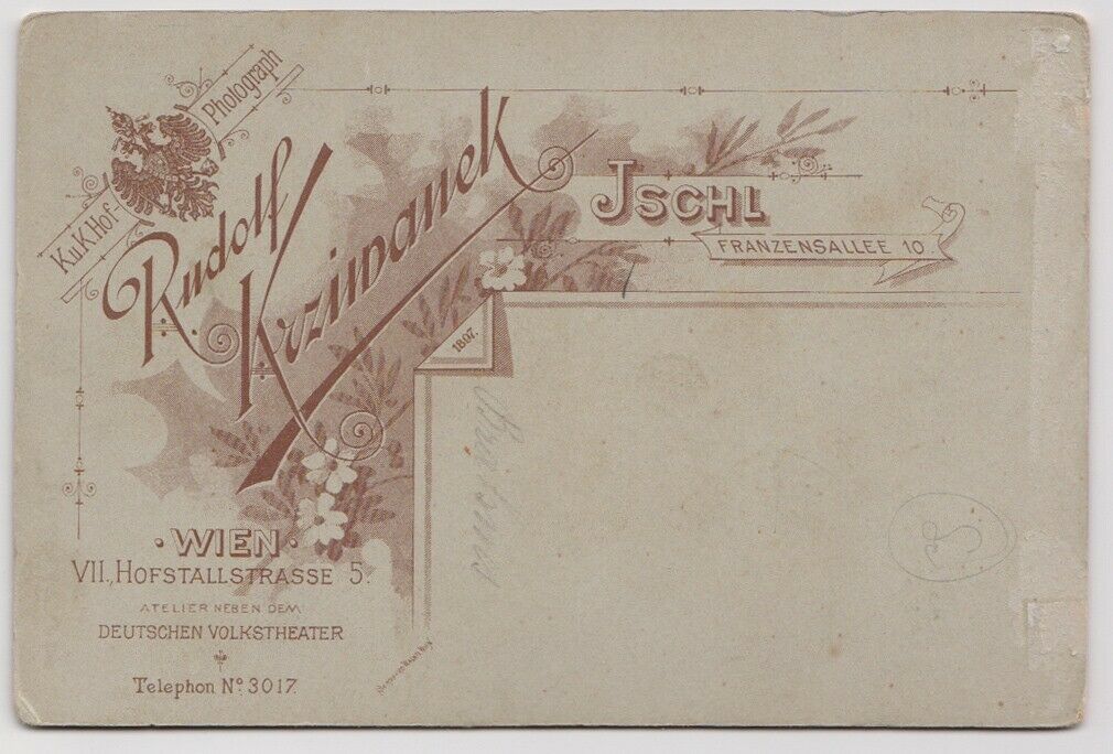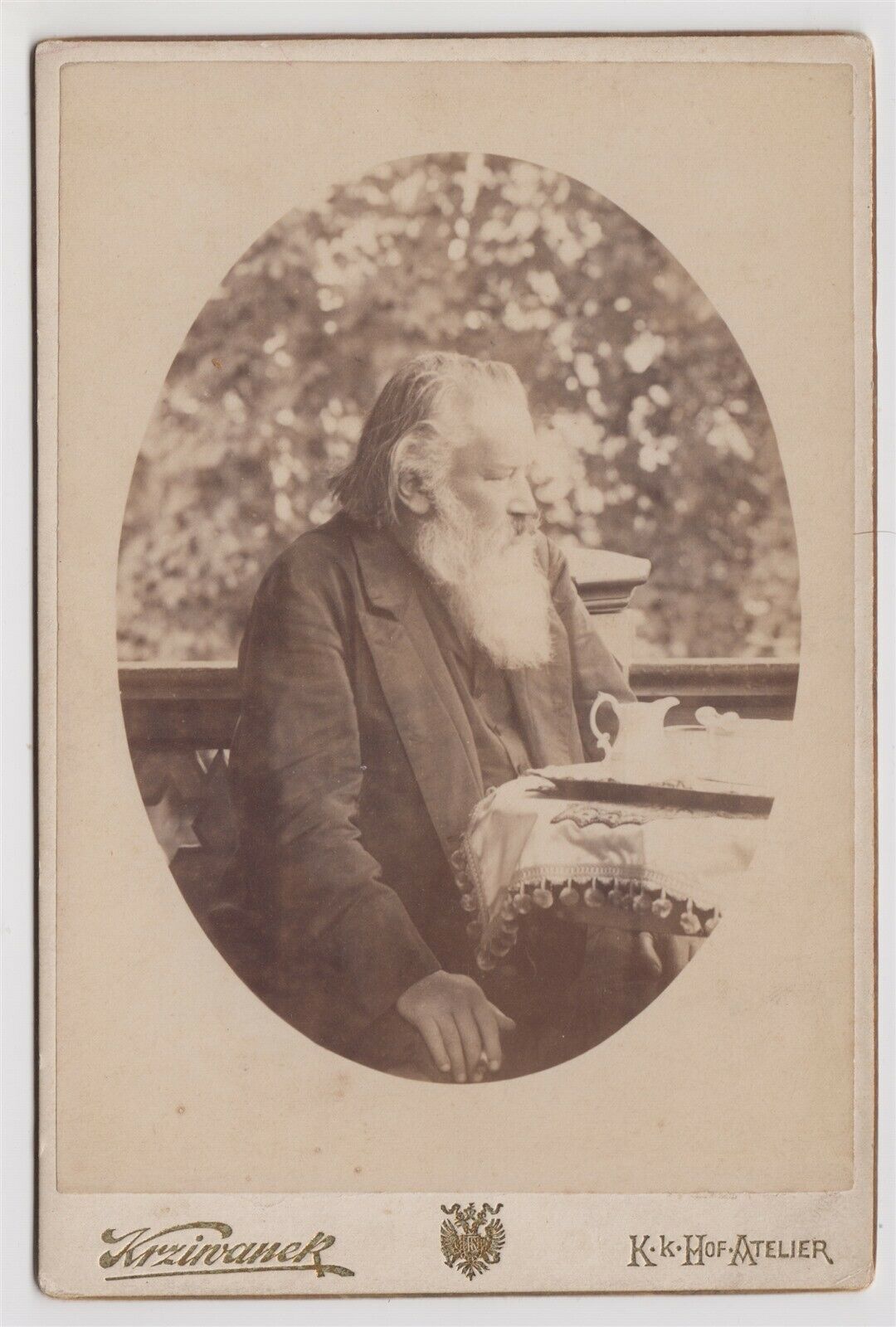 R. Krzinanek of Vienna cabinet photograph of the important composer, who is shown in an oval frame, seated outside at a tea table. Fine. 4.25 x 6.5 inches (10.9 x 16.3 cm).