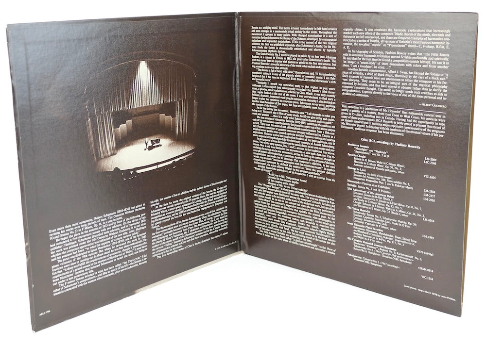 1976 RCA SRL1-1766 Stereo LP of the beloved and legendary pianist, signed "Vl Horowitz/ 1976" to a light area of the evocative matte cover photograph. Record and cover in fine condition.