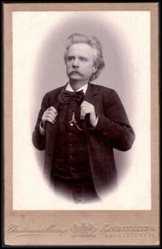 Grieg, Edvard. (1843-1907). Rare Original Cabinet Photograph. A striking and distinguished original cabinet photograph of the Romantic Norwegian composer, most celebrated for his Piano Concerto in A minor, for his incidental music to Ibsen's "Peer Gynt" (which includes Morning Mood and In the Hall of the Mountain King), and for his collection of piano miniatures, Lyric Pieces.