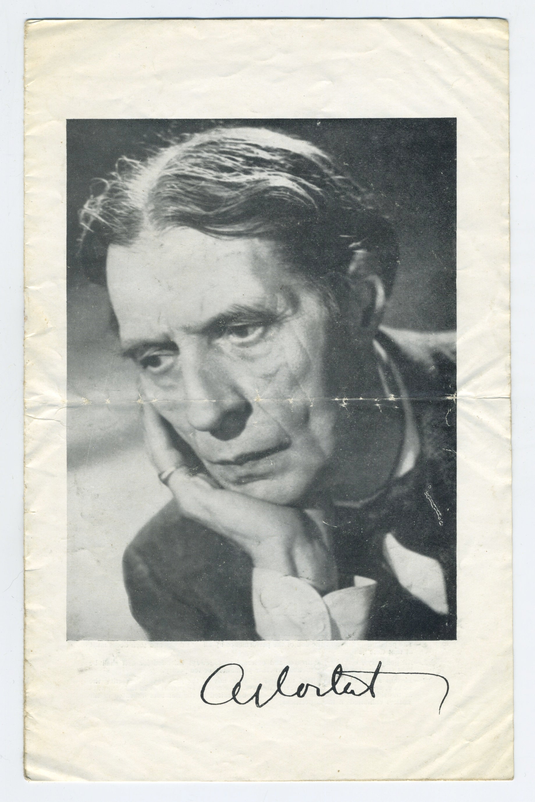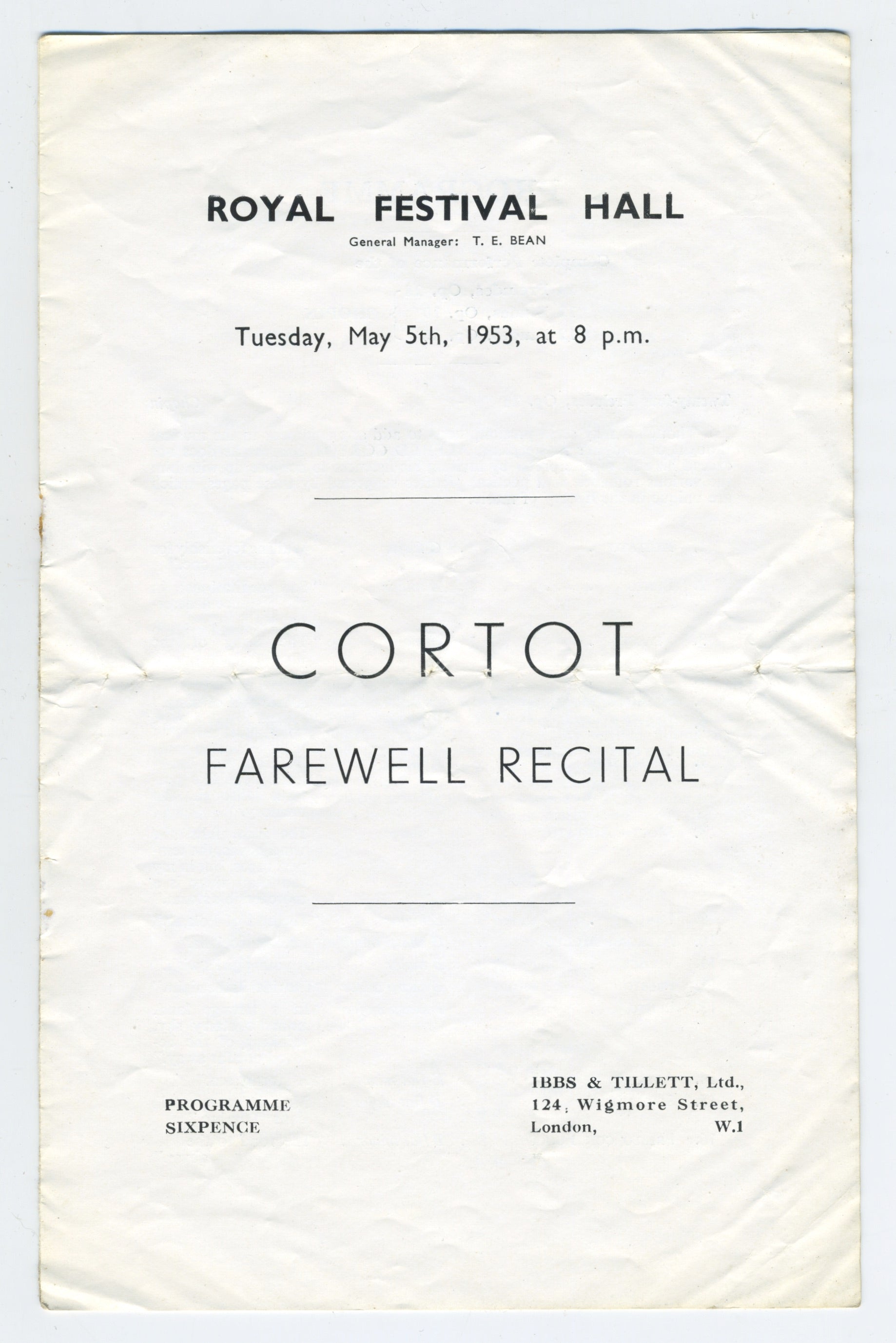 Original 1953 program from the great pianist's "Farewell Recital Tour" in England, Ireland and Scotland. 6 pp. With a facsimile autograph beneath his photograph on the front cover. Wrinkling, one heavy horizontal crease through the center; worn but overall good. 5 x 8 inches (12.7 x 20.3 cm.).