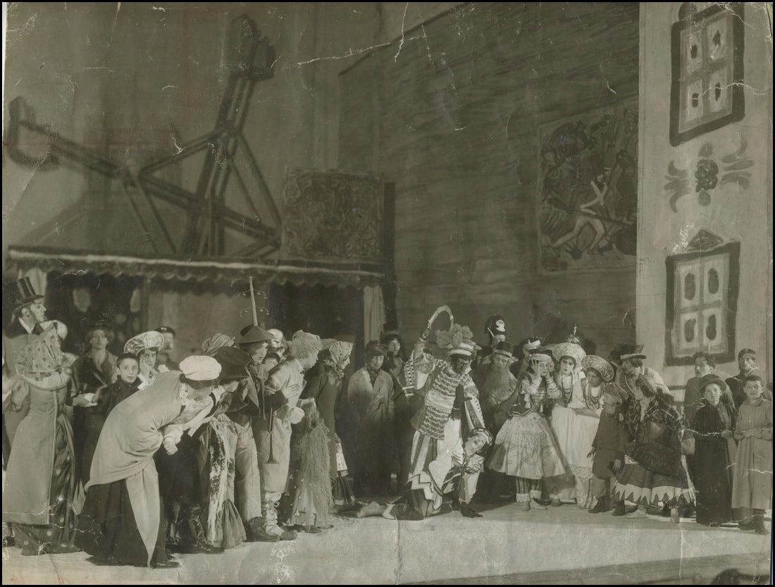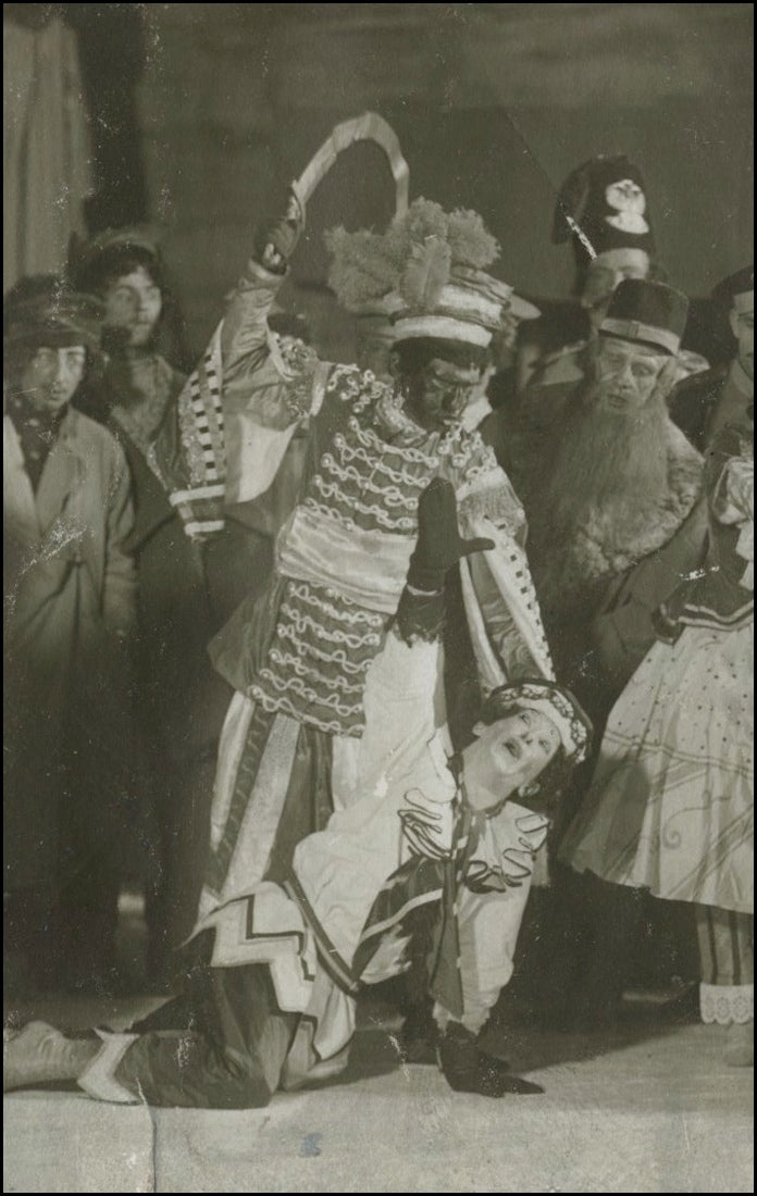 [Ballets Russes] Nijinsky, Waslaw. (1889-1950)]. Original Photograph in "Petrouchka.". Vintage 9 x 11 inch photograph of the celebrated dancer in "Petrouchka." Irregularly trimmed, handling creases and wear, stamps and reinforcements on the verso. Nevertheless, a rare original period photograph.