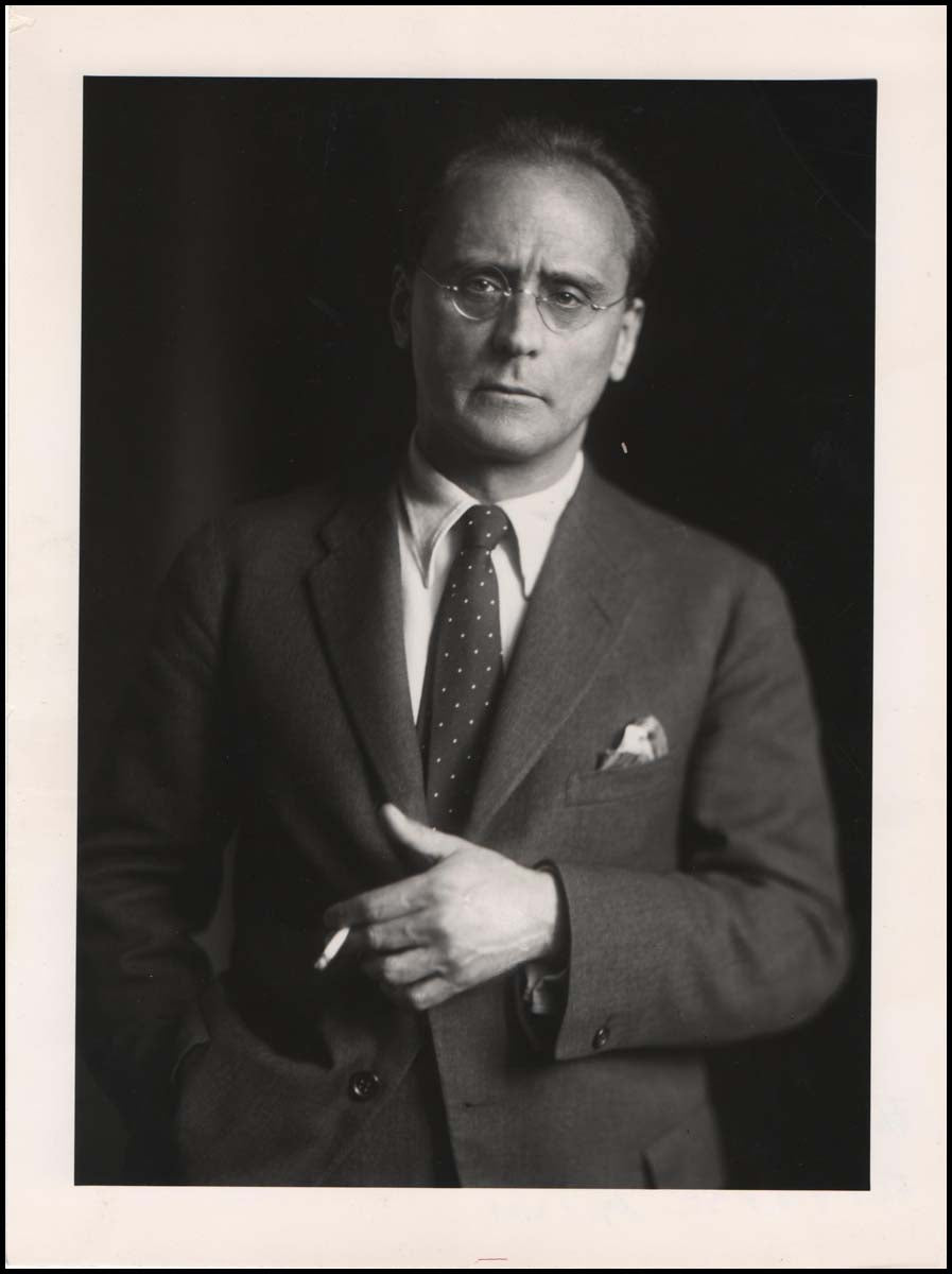 Portrait photograph, originally taken in 1932 and here in a fine ca. 1960 reprint deaccessioned by the Austrian Nationalbibliothek archives and with their stamps on the verso. 8 x 10 inches. Fine.