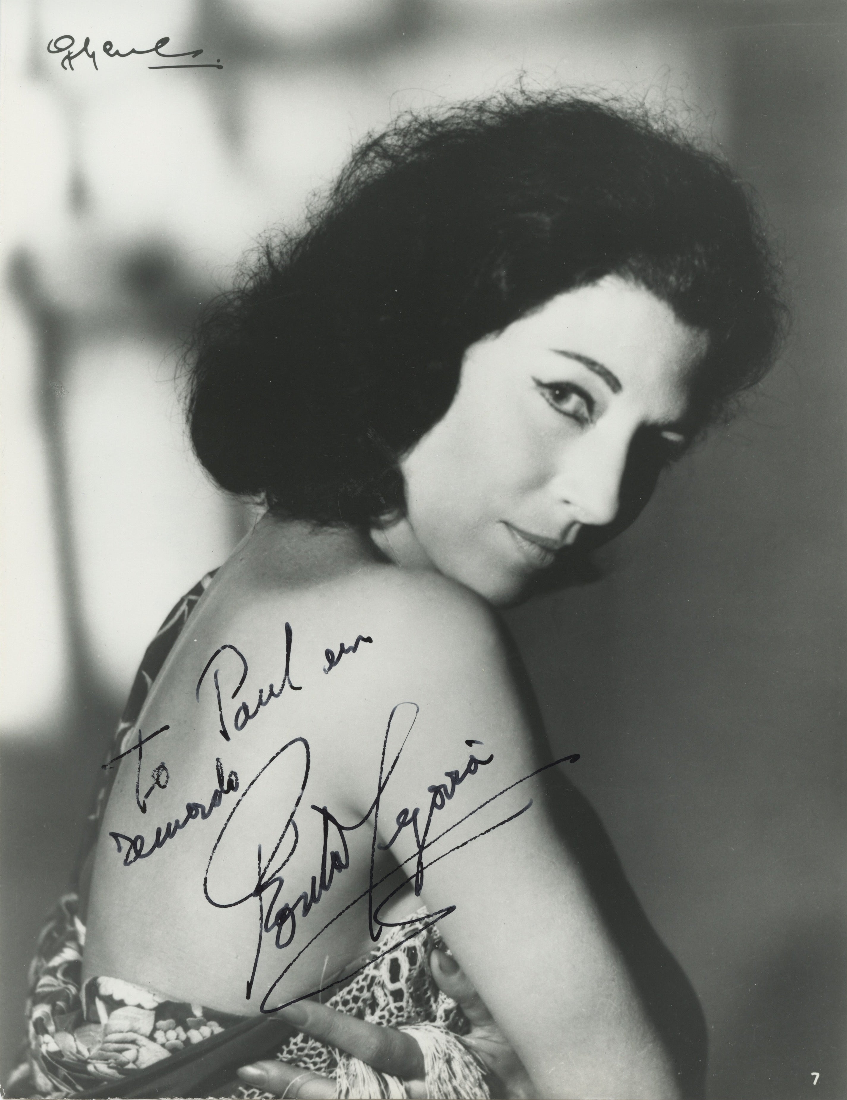 Signed photograph of the Spanish dancer and actress, who has inscribed "To Paul en recuerdo / Rosita Segovia." S. Hurok Presents stamp to verso. Fine. 7 x 9.25 inches (17.8 x 24.1 cm.).