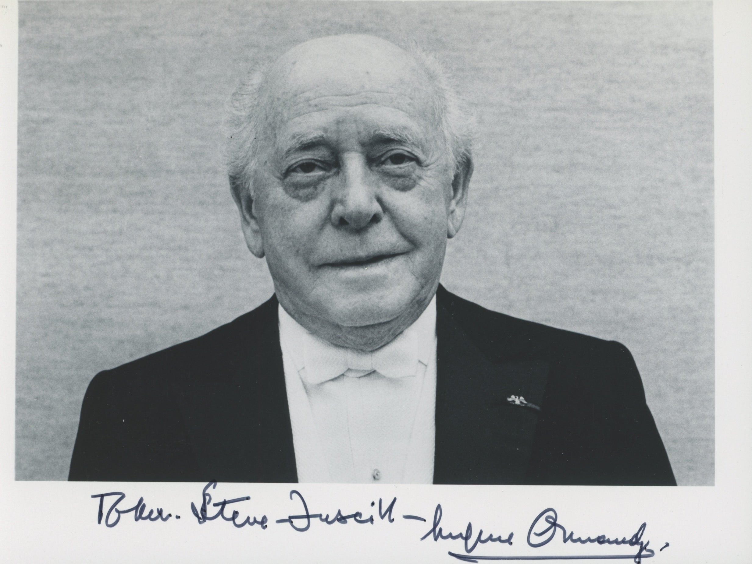 SIgned photograph of the important conductor, who has inscribed "To Mr. Steve Juscik - Eugene Ormandy." In fine condition. 7 x 5.25 inches (17.8 x 13.3 cm.).