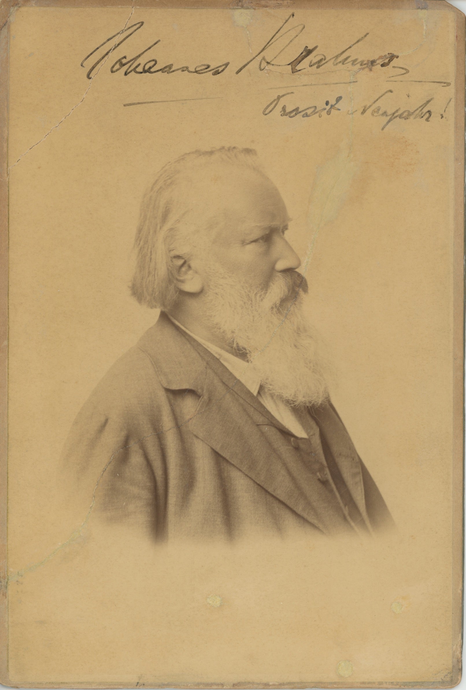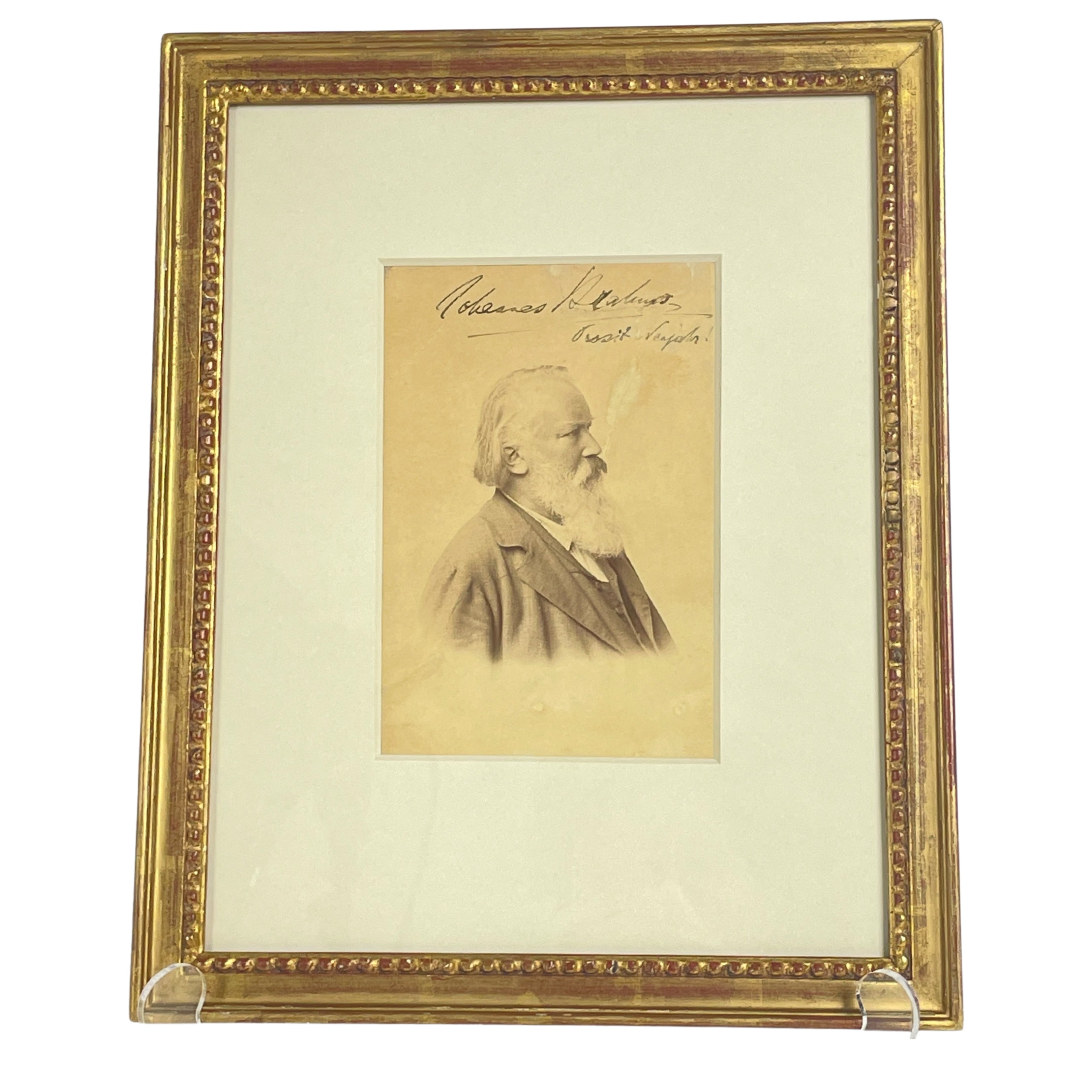 Brahms - though an autograph collector himself - disliked the notion of his signature being collected. He rarely signed photographs (and if so, usually on the verso), signed many letters with his initials only, and the present fully signed example is a rarity indeed.