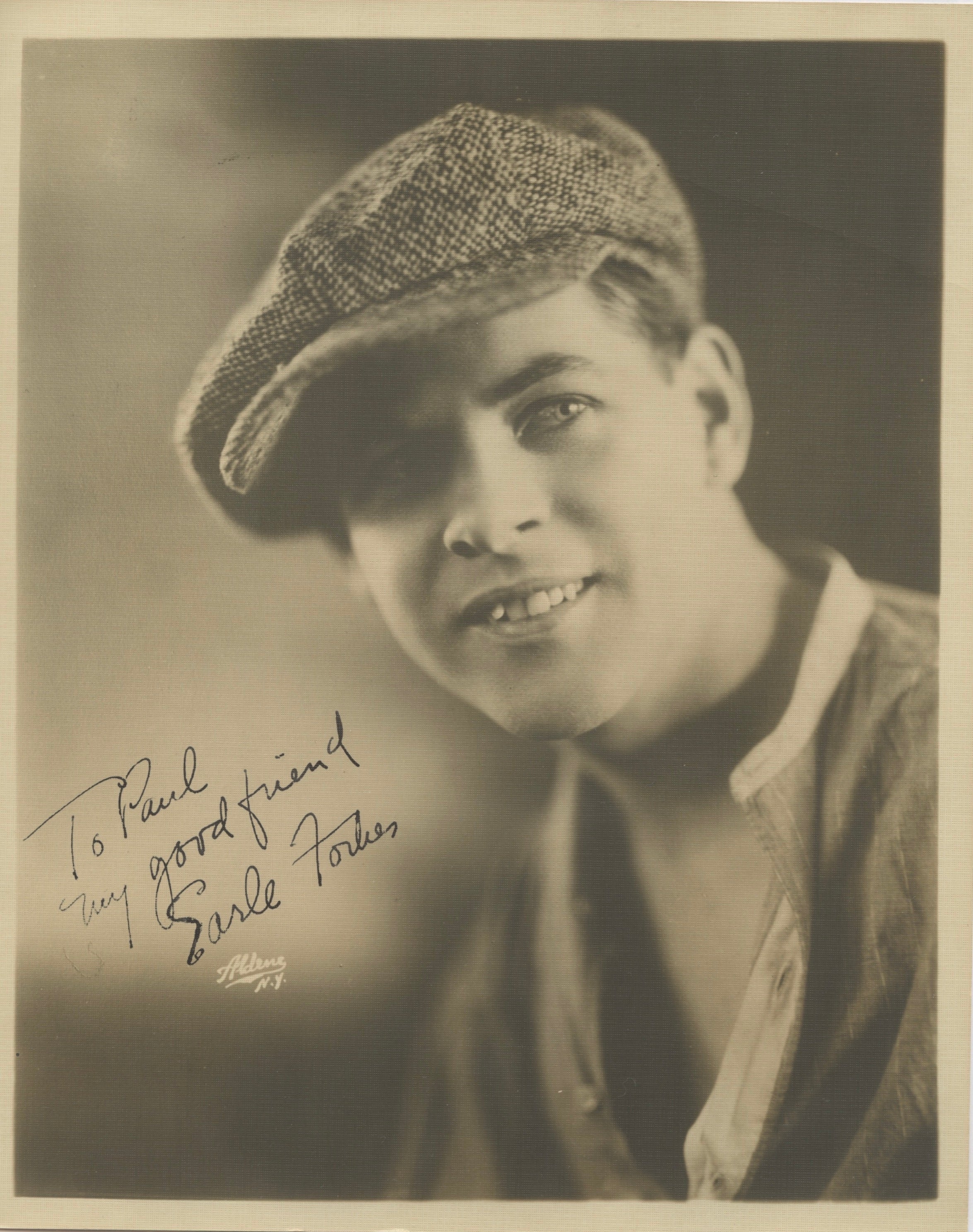 Signed matte sepia doubleweight portrait of the American photographer best known for his nude male portraits. By Aldene, New York. Inscribed to Paul McMahon. 10 x 8 inches (25.3 x 20.5 cm). In fine condition.