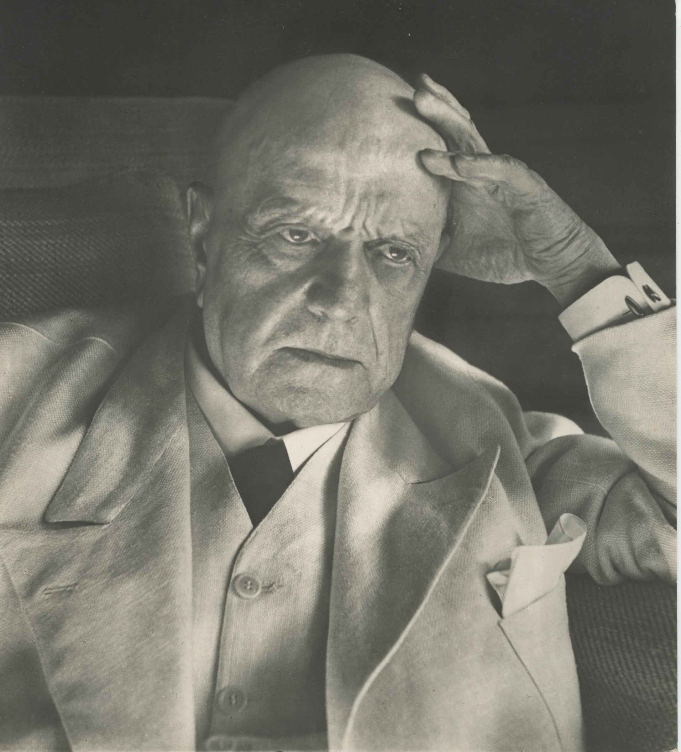 Striking original gelatin silver doubleweight photograph of the composer seated, ca. 1950 by the Sunday Times portrait photographer, Douglas Glass. Without priinted photographer attribution but an original print from the photographer's archives. In very fine condition. 7.75 x 7.25 inches (20 x 18.5 cm)