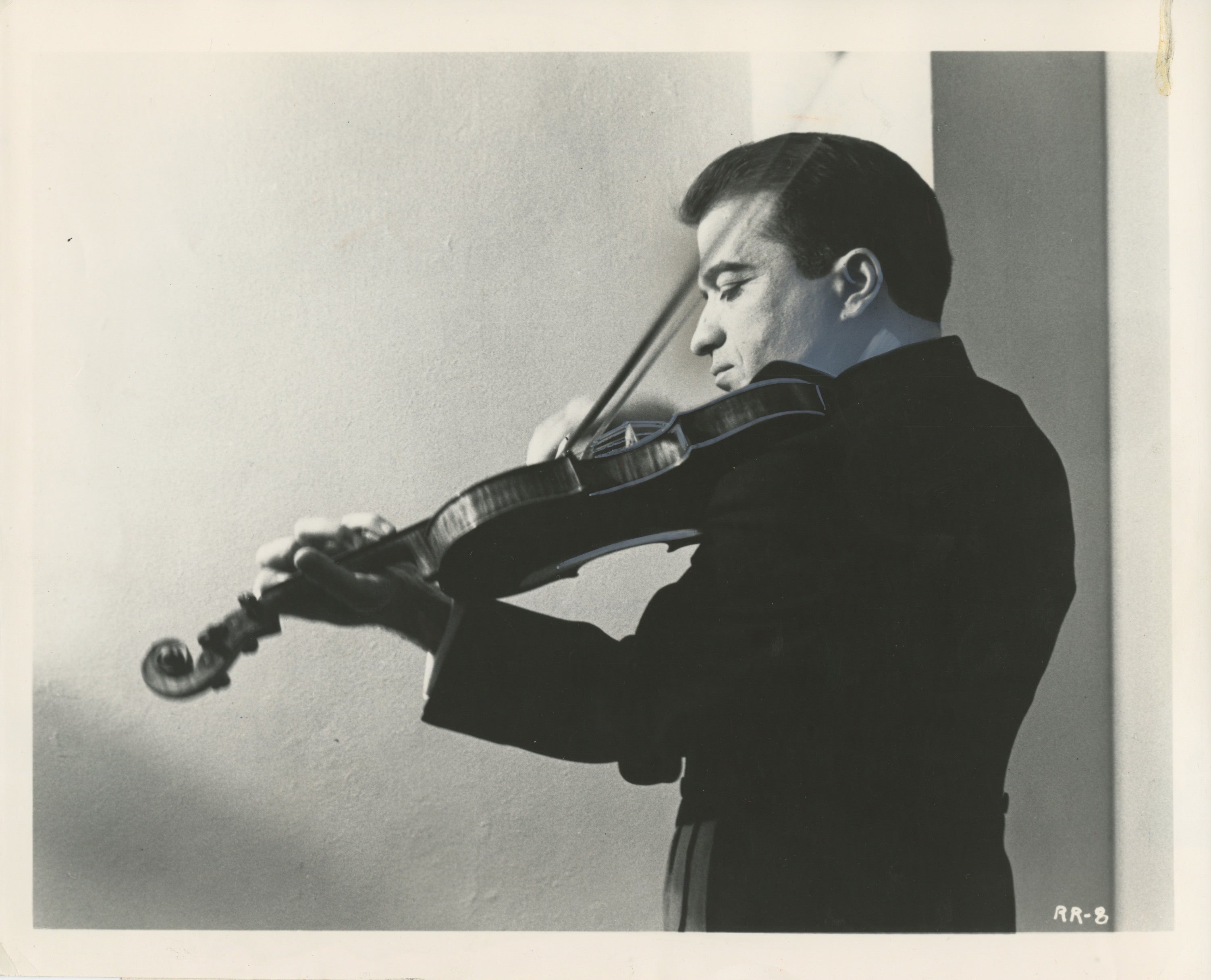 Original 1963 glossy press photograph of the superb fiddler, specialist in the 19th century bravura repertory. A student of Persinger, Piastro and Kulenkampff, Ricci was widely acclaimed for his technical prowess and was the first to record the 24 Paganini Caprices in their original version. Press clipping and notations on verso, a few areas of in-painting from publication, else fine. 8 x 10 inches; 21 x 25 cm.