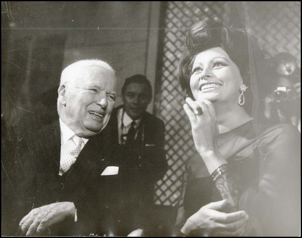 [Film & Theatre] Chaplin, Charlie. (1889-1977) & Loren, Sophia. (b. 1934). Original Photograph.