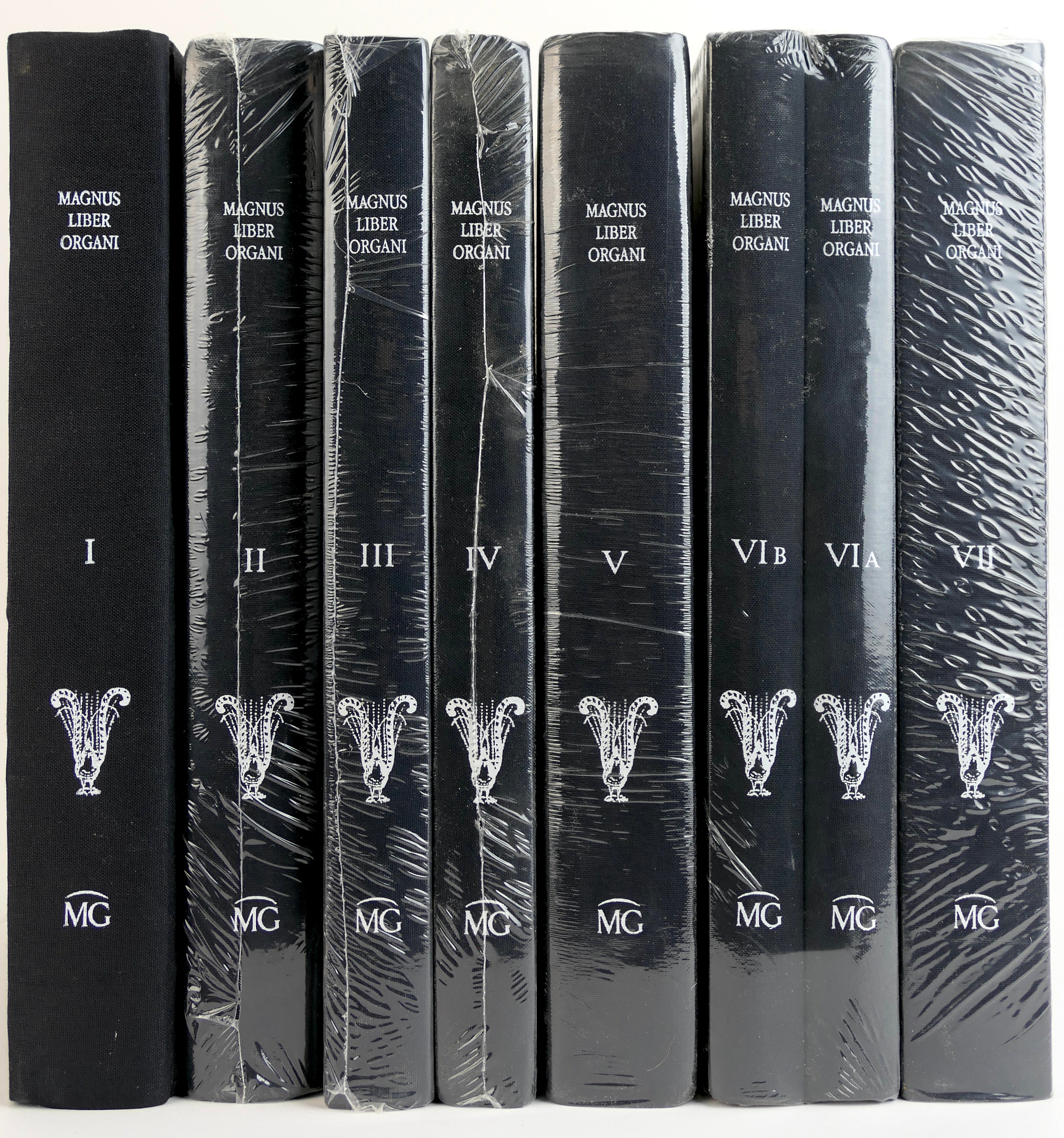 Hardcover. Quarto. Seven Volumes in eight. This edition, undertaken by an international team of scholars working under Professor Edward H. Roesner, presents the Parisian liber organi in all its richness and diversity for the first time in a complete modern edition. All volumes of this important project bound in black cloth with mounted color plate illustration on cover, and including musical scores and some illustrations. All but Vol I still shrink-wrapped and all in very fine, as new condition apart from some very slight rubbing to covers of Vol I. Individual volumes as follows: