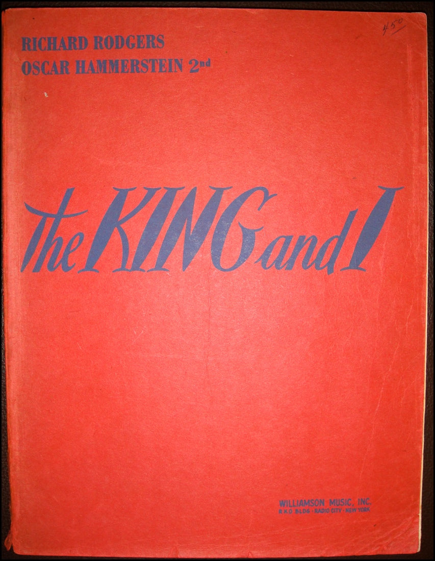 Rodgers, Richard. (1902-1979) & Hammerstein, Oscar. (1895-1960). "THE KING AND I," Piano-Vocal Score. New York: Williamson Music. 1951. First edition. Upright score, in paper binding printed in red and blue. 198 pp. With slight edge wear to covers and spine, but still very bright and internally very fine throughout. Fuld p. 494. Rare.