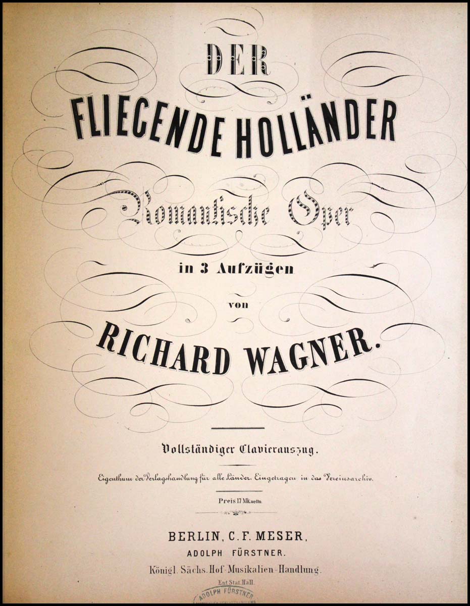 Wagner, Richard. (1813–1883). Der Fliegende Holländer. Romantische Oper in 3 Aufzügen. Vollständiger Clavierauszug. [Mary Burrell's extra-illustrated Copy with Original Early Performance Programs and Clippings]. Berlin: C. F. Messer. [ca. 1874]. Title; 2 - 237 pp. [PN] 275. Lithographic reprint of the first edition, with "Richard Wagner's Werke. Band II" on the front board. Contemporary red textured cloth with decorative titling in gilt to upper boards. In very good condition.