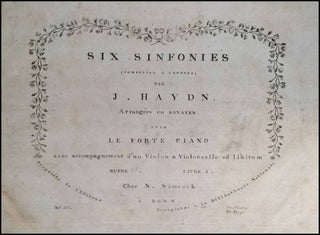Haydn, Joseph. (1732–1809) Six Sinfonies, compose?es a? Londres ... Arrange?es en Sonates pour le Forte Piano avec accompagnement d'un Violon & Violoncelle ad libitum. Livre I & II.