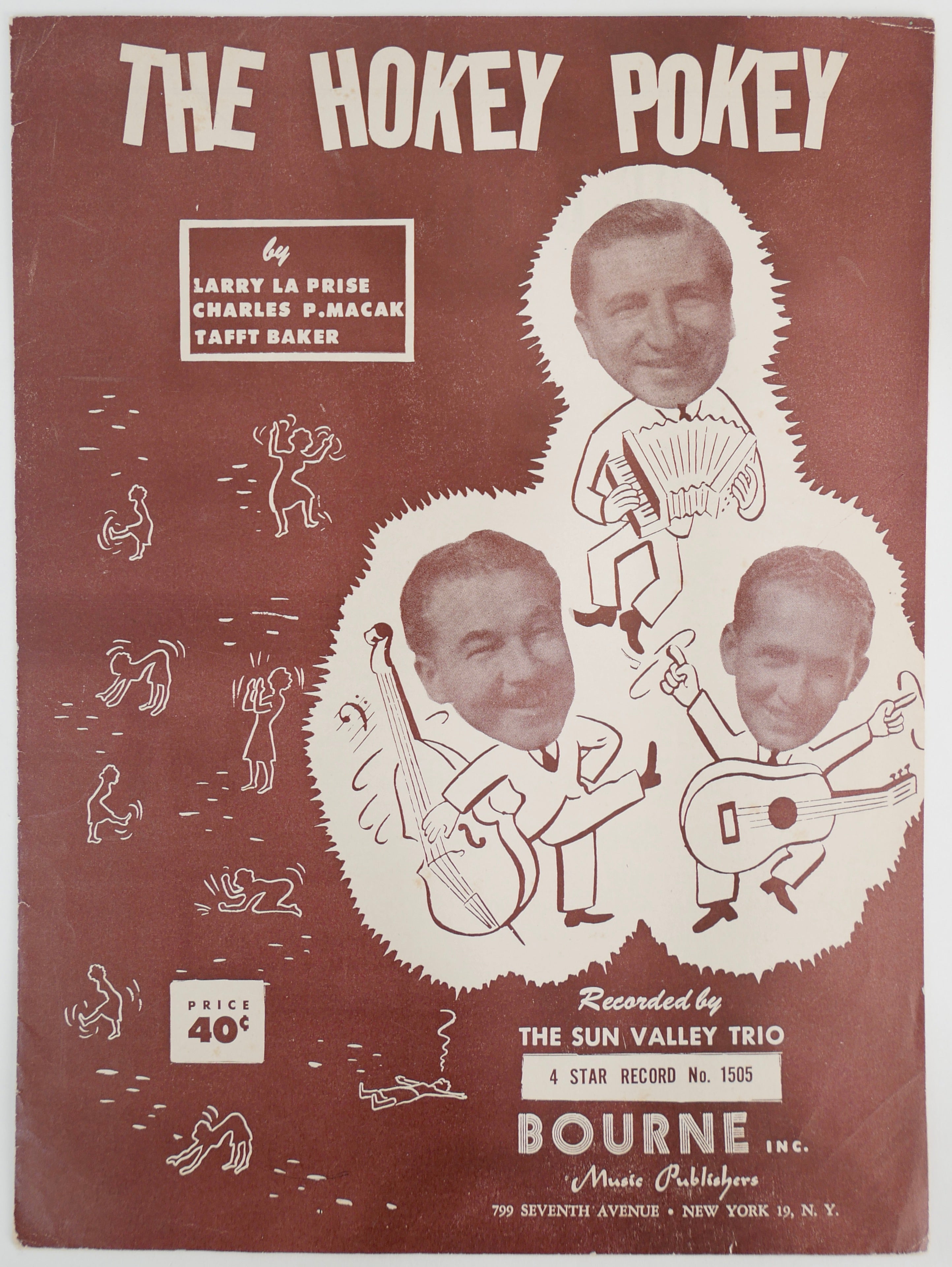 "LaPrise was born in Detroit, Michigan. He wrote 'Do The Hokey Pokey' in the early 1940s for the après-ski crowd at a club in Sun Valley, Idaho. The song was first recorded by his group the Ram Trio (on the record they're known as the Sun Valley Trio) (with Charles Macak and Tafft Baker) in 1948. They were awarded U.S. copyright in 1950. The authorship of the Hokey Pokey is disputed, with Irish songwriter Jimmy Kennedy having published the original 'Cokey-Coney' in 1942. Robert Degan sued LaPrise for copyright infringement of his 1946 'The Hokey-Pokey Dance'. They settled out of court." English Wikipedia, article "LaPrise, Larry."
