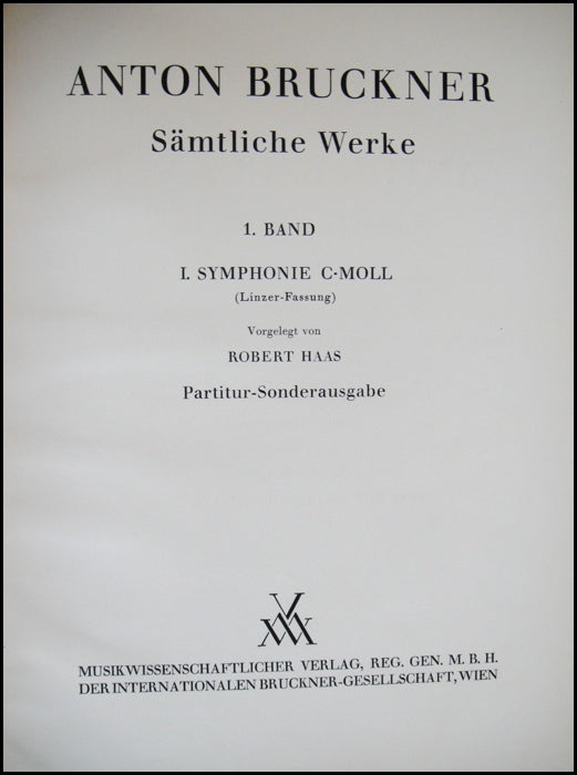 Sämtliche Werke. Kritische Gesamtausgabe im Auftrage der Generalddirektion der Nationalbibliothek und der Deutschen Bruckner-Gesellschaft; hrsg. von Robert Haas. Partitur. Upright folio. 122 pp. Black cloth with impressed faux snake skin covering. This copy from the library of Karl Bohm and with his ownership signature in bold blue ink on the front free endpage. In very fine condition.