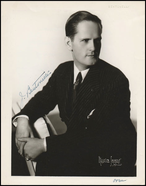 Bentonelli, Joseph. (1898-1975). Signed Photograph of the "Oklahoma Tenor.". Fine stamped original Maurice Seymour 8 X10 photograph of the handsome and debonair "Oklahoma Tenor." Additionally signed and inscribed on the verso.