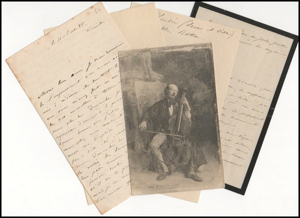 Batta, Alexandre. (1816-1902). Collection of Autograph Letters. Rare collection of 4 autograph letters from the important Belgian cellist and composer. To his friend, Emile Renaud (organist of the palace chapel, Versailles). Together with a postcard portrait, a reproduction of the 1855 Batta portrait by Jean-Louis-Ernest Meissonier. All in very fine condition, as follows: