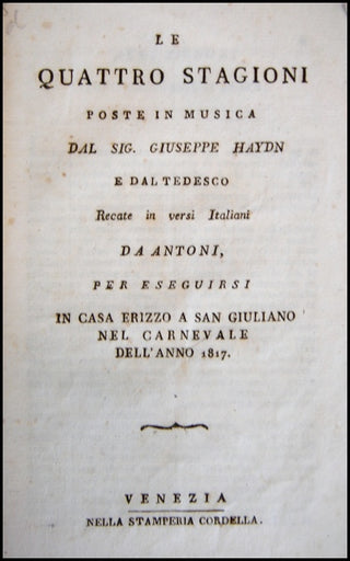 90. Haydn, Joseph. (1732–1809) Le Quattro Stagioni. 1817 Libretto