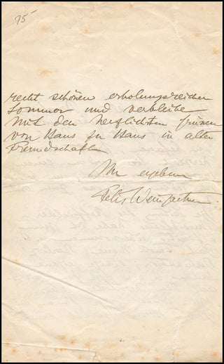 255. Weingartner, Felix. (1863–1942) Autograph Letter