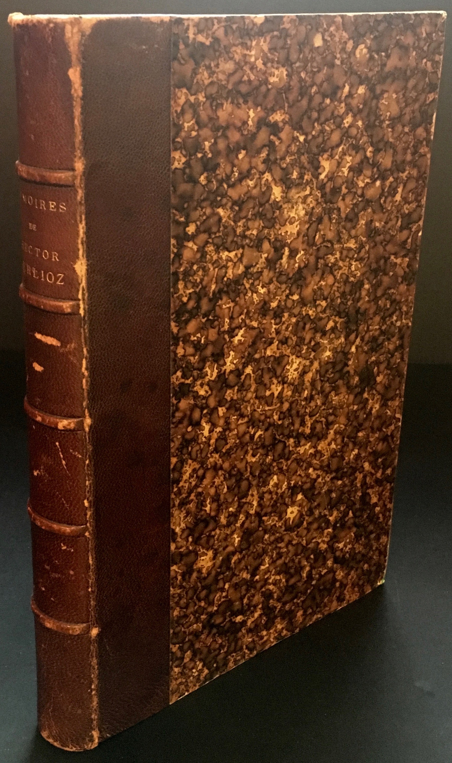 Large octavo. Half brown calf with marbled boards, five raised bands on spine. 1f. (half-title), 1f. (original half-length photographic portrait of Berlioz by Franck), 1f. (title), 1f. (quotation from Macbeth), 509, [i] (blank) pp. + 2ff. (additional textual quotation from Macbeth, errata). Spine somewhat rubbed, bumped, and scuffed. Some staining and minor foxing through first 30 pages, else fine. Second Edition (first trade edition). Scarce. Holoman A6. Hopkinson 87. This copy from the collection of the magnificent soprano Jessye Norman.
