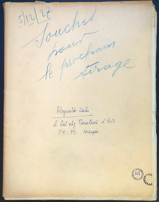 42. Hahn, Reynaldo. (1874-1947) "Le Bal de Béatrice d’Este" - WITH AUTOGRAPH NOTE AND CORRECTIONS