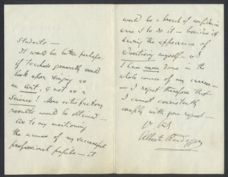 150. Randegger, Alberto. (1832–1911) Autograph Letter about Singing, with Postcard Photograph