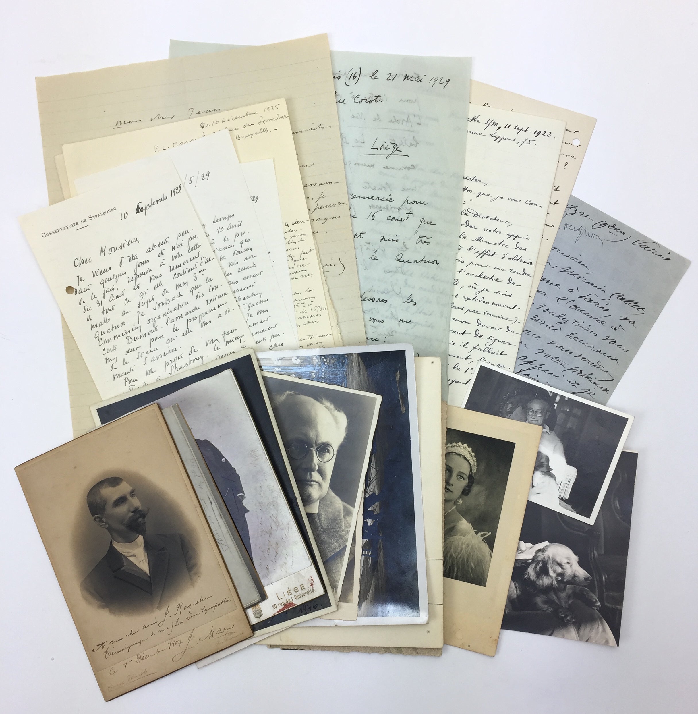 An interesting collection of autograph letters and signed and unsigned photographs from the collection of Jean Rogister, the important Belgian violist and founding member of the Quatuor de Liège. The group includes autograph items from Belgian and French musicians Guy Ropartz, Paul-Louis Marsick, Sylvain Dupuis, Paul Rougnon, Joseph Maris, Ovide Musin and others, many concerning the performances of the Quatuor de Liège. 11 autograph letters and 23 photographs in total, in overall fine condition.