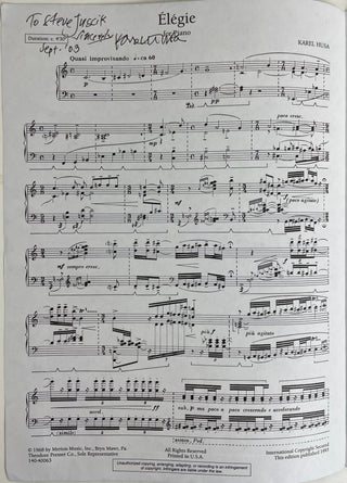 32. Husa, Karel. (1921–2016) "Élégie" - Signed Score