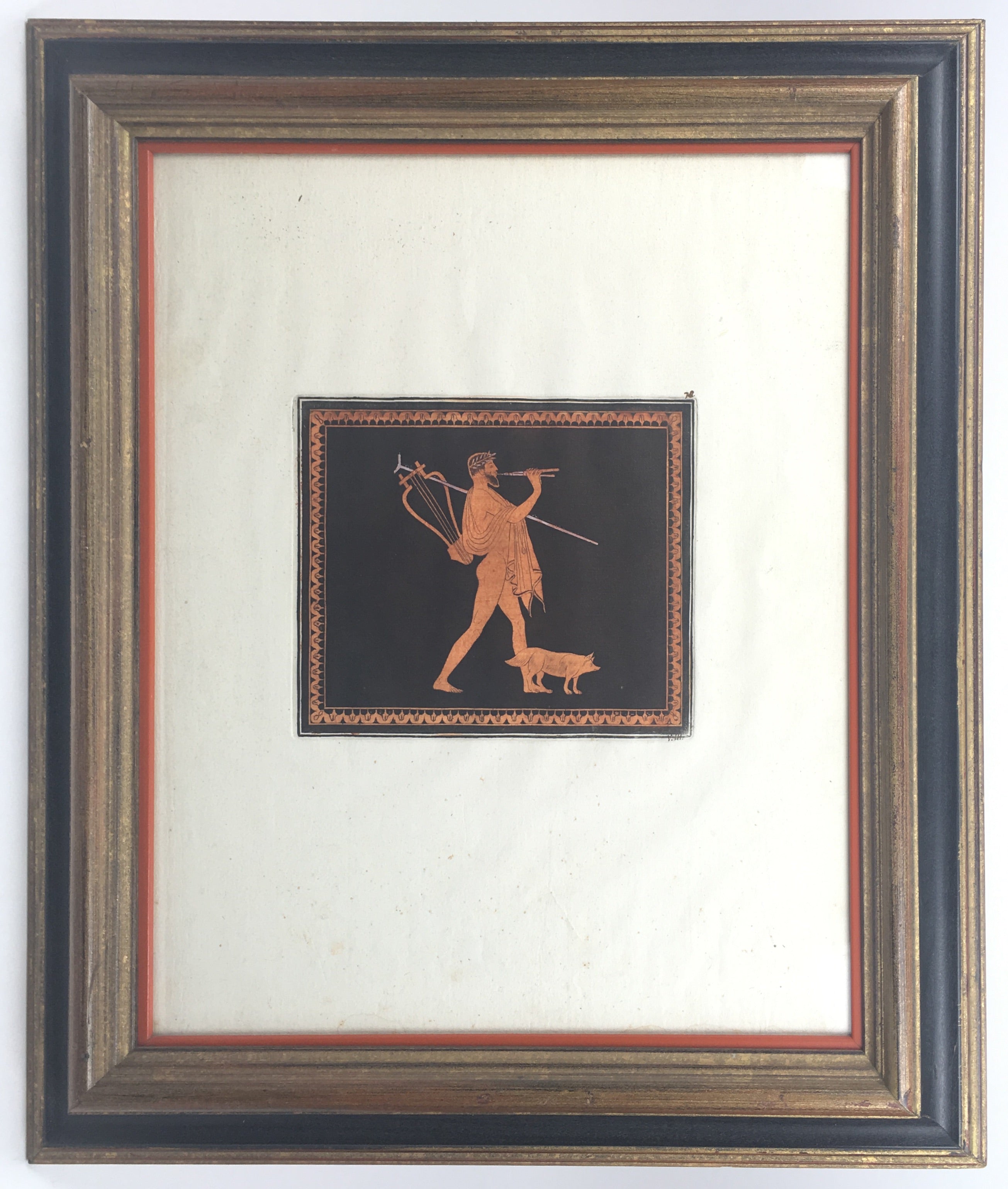 This fine engraving was done by master engraver Johann Heinrich Wilhelm Tischbein (also known as Goethe Tischbein) as an illustration of an item of Sir William Hamilton’s collection of original Greek vases and urns.