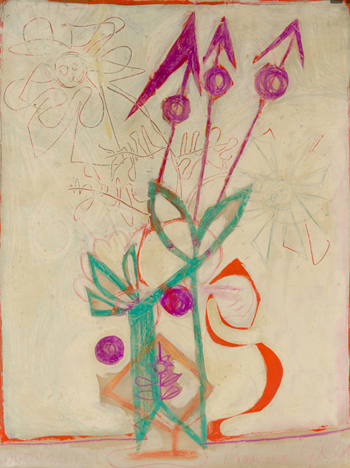 French artist of the post-World War II School of Paris, Françoise Gilot is perhaps most famous as a muse and lover to Pablo Picassofrom 1944 to 1953, and the mother of his children, Claude Picasso and Paloma Picasso. .While her story may be inextricably linked to 20th century art’s most towering figure, Gilot’s remarkable life and vast oeuvre deserves recognition on its own merits. In a career spanning over seven decades, Gilot’s distinct language of form and color reveals an enduring preoccupation with both the personal and universal forces of nature, time, space and mythology.