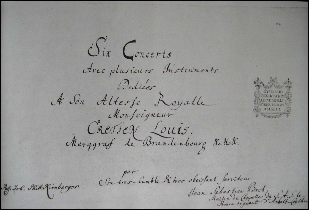 Oblong, 33 x 26 cm, 170 pp. Halftone monochrome facsimile of the dedication autograph score—dated 24 March 1721—for Christian Ludwig, Margrave of Brandenburg. Bach's elegantly penned title "Concerts avec plusieurs instruments" (concertos with several instruments) is a somewhat modest description of the concertos to follow, in that many different combinations of instruments and sonorities are exploited, perhaps deliberatly to get the Margrave's attention and approval, not unlike the way Mozart used his Gran Partita to introduce himself to the Viennese public. Sadly the autograph score was left unused in the Margrave's library until his death in 1734, the reason being (it is believed) that he lacked the musicians to perform the concertos. One of the great gems of Western music, in a handsome binding in brown linen with lettering in gold.