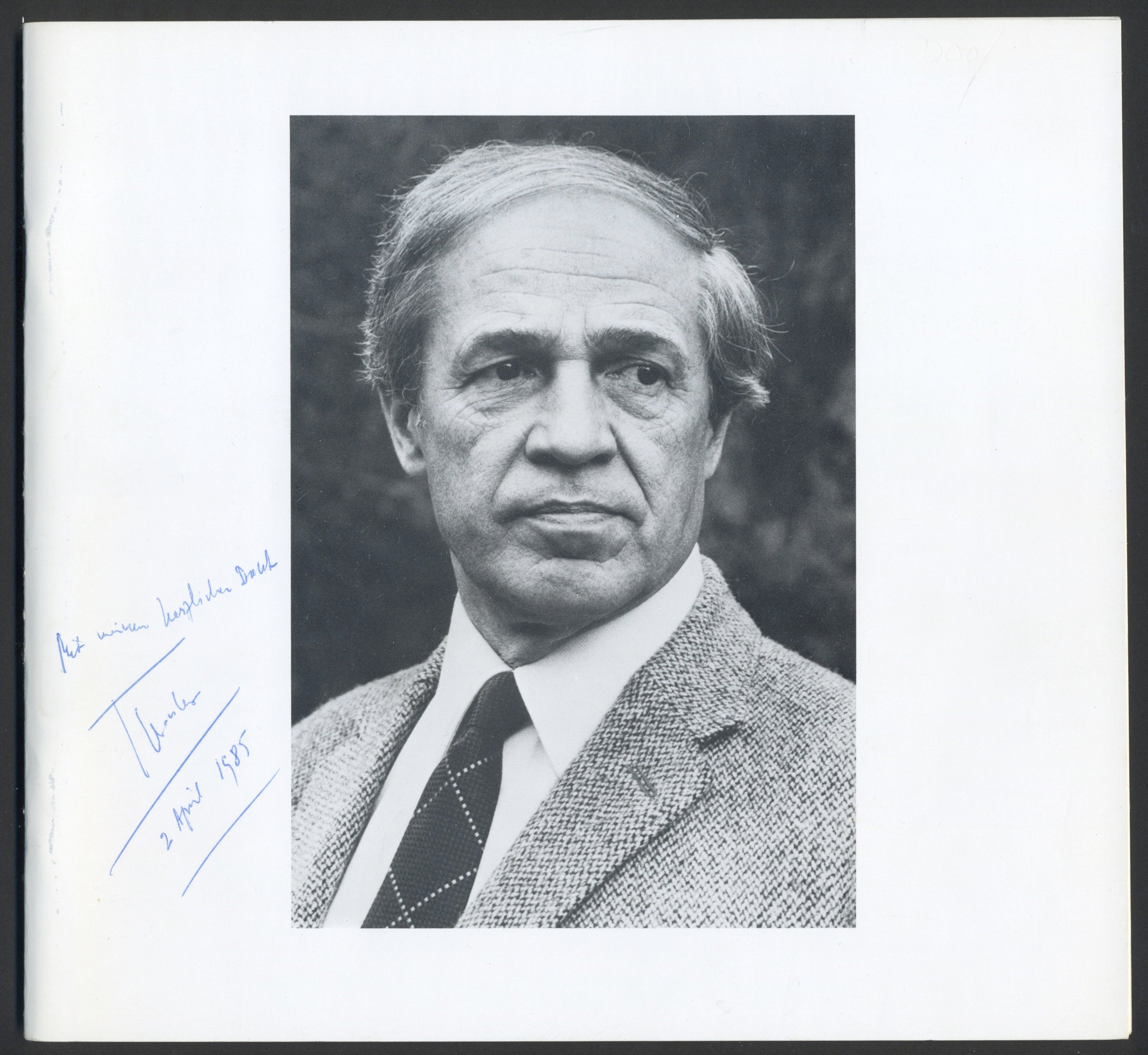 Together with a signed concert program from the festival "Hommage à Pierre Boulez," given by the broadcaster Südwestfunk in Baden-Baden, March 29–April 1, 1985. Boulez has signed on the cover (translated from the German): "With many thanks / P. Boulez / 2 April 1985." Very fine. 38 pp. 8.25 x 7.75 inches (21 x 19.5 cm).
