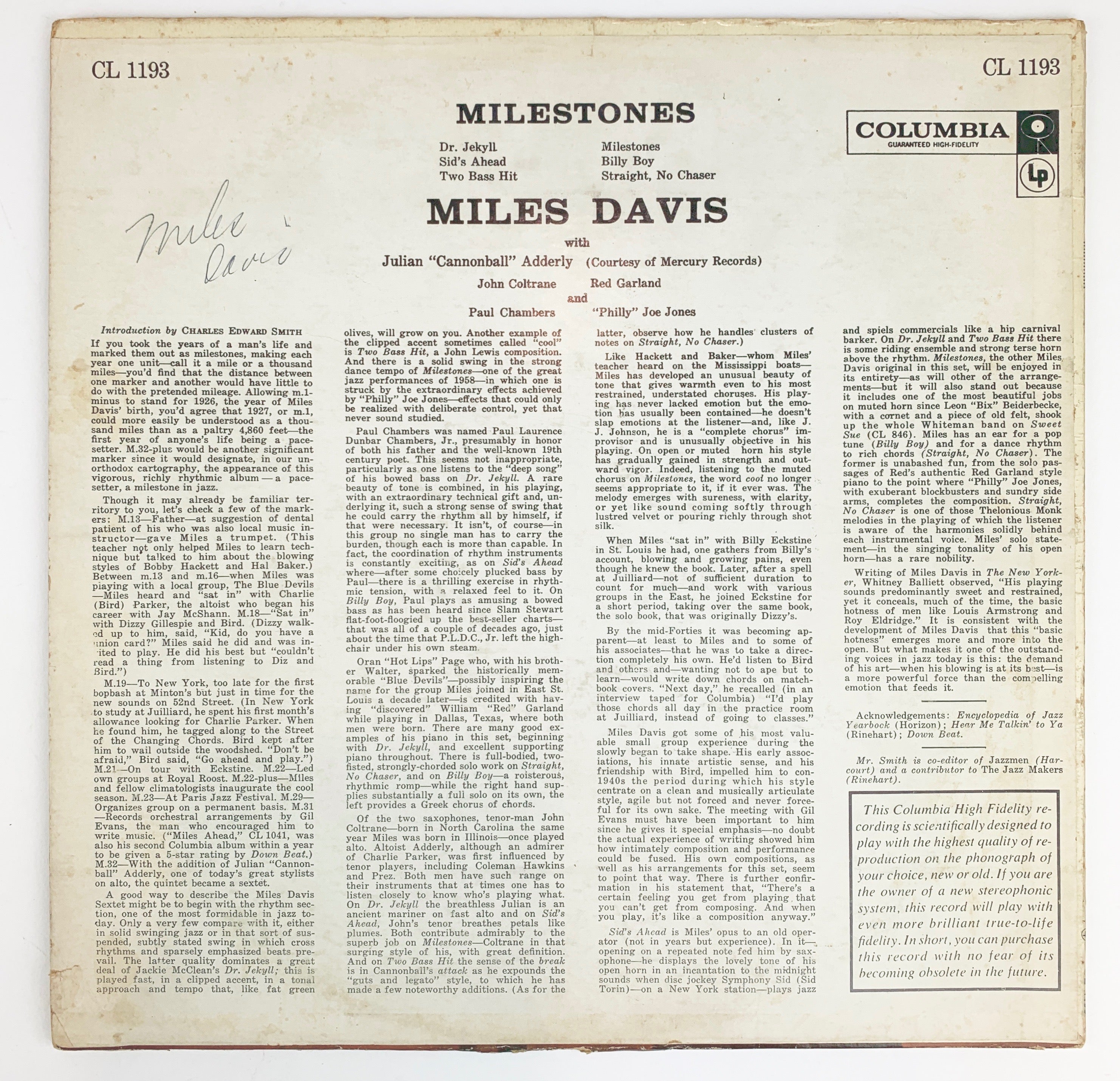 Davis, Miles. (1926–1991). "Milestones"- SIGNED.