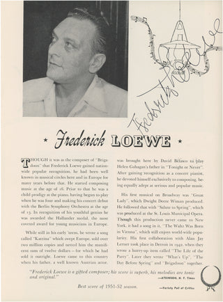 166. Loewe, Frederick. (1901–1988) "May I Suggest Romance?" from "Great Lady" – Signed Sheet Music